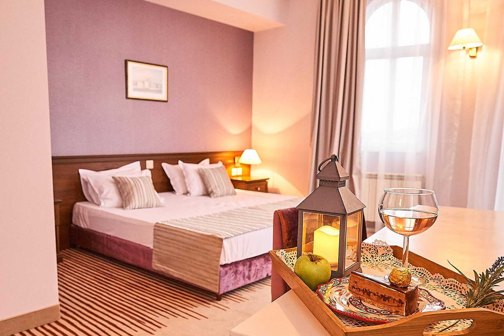 Deluxe kamer, zonder buitenruimte. Een tweepersoonsbed. Mogelijkheid tot een extra bed in de vorm van een slaapbank. Wifi, airconditioning en verwarming zijn inbegrepen. Koelkast. Tv met internationale zenders. Vloerbedekking. Föhn. Badkamer met bad of douche en toilet. Schoonmaak 6 keer/week.