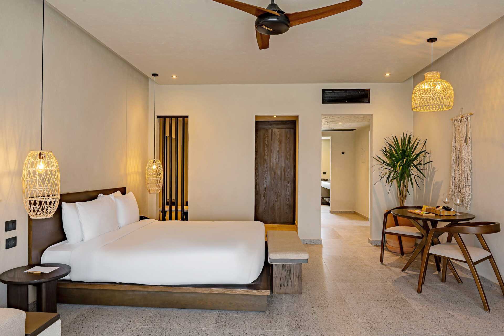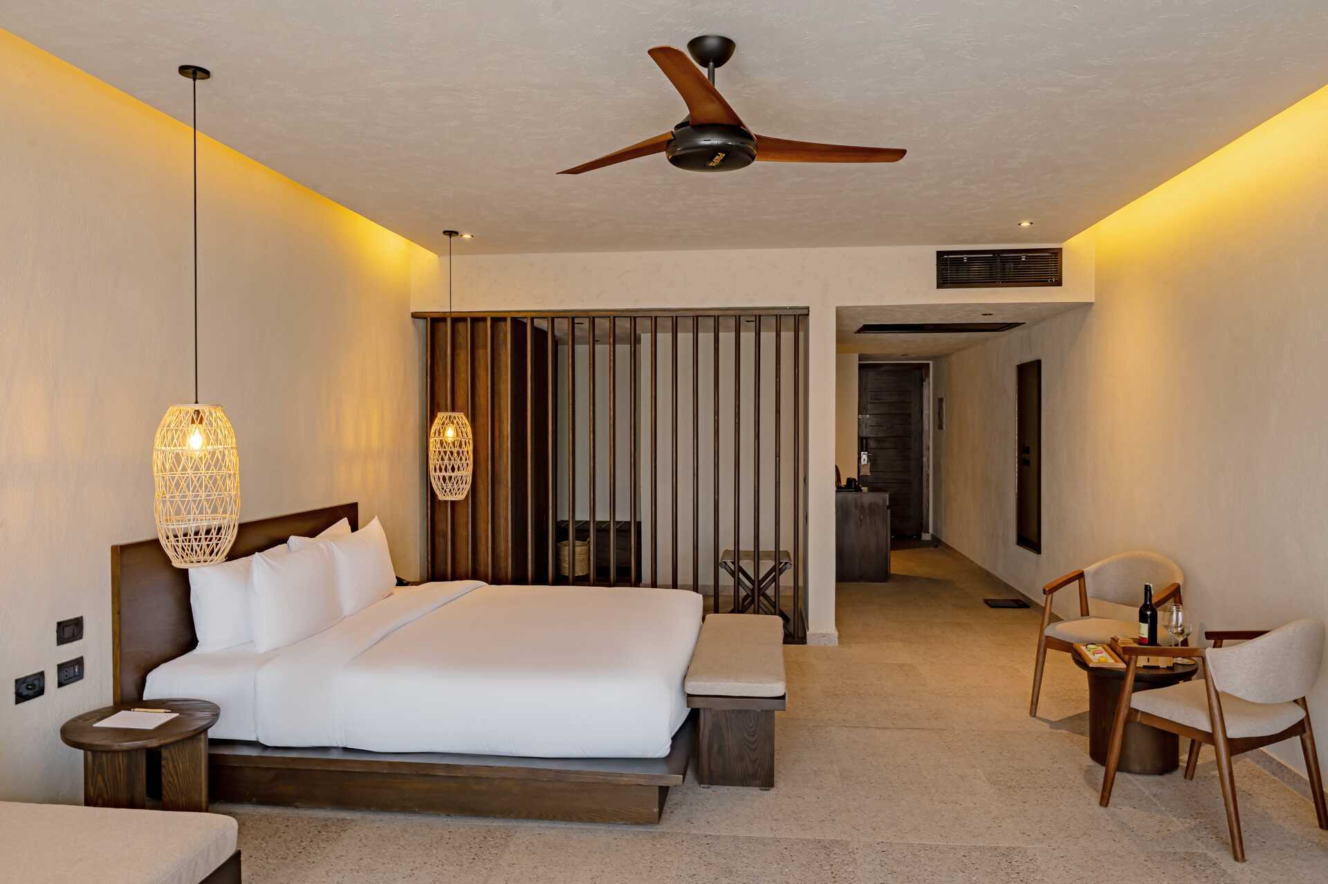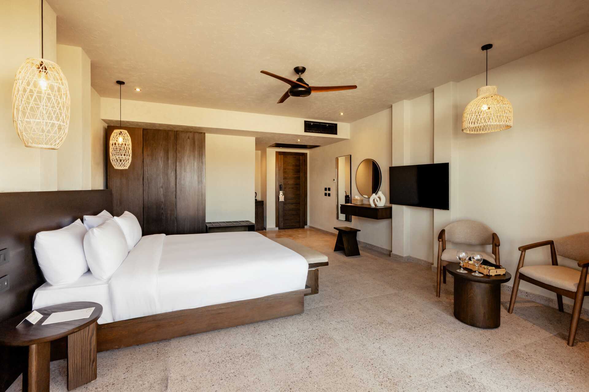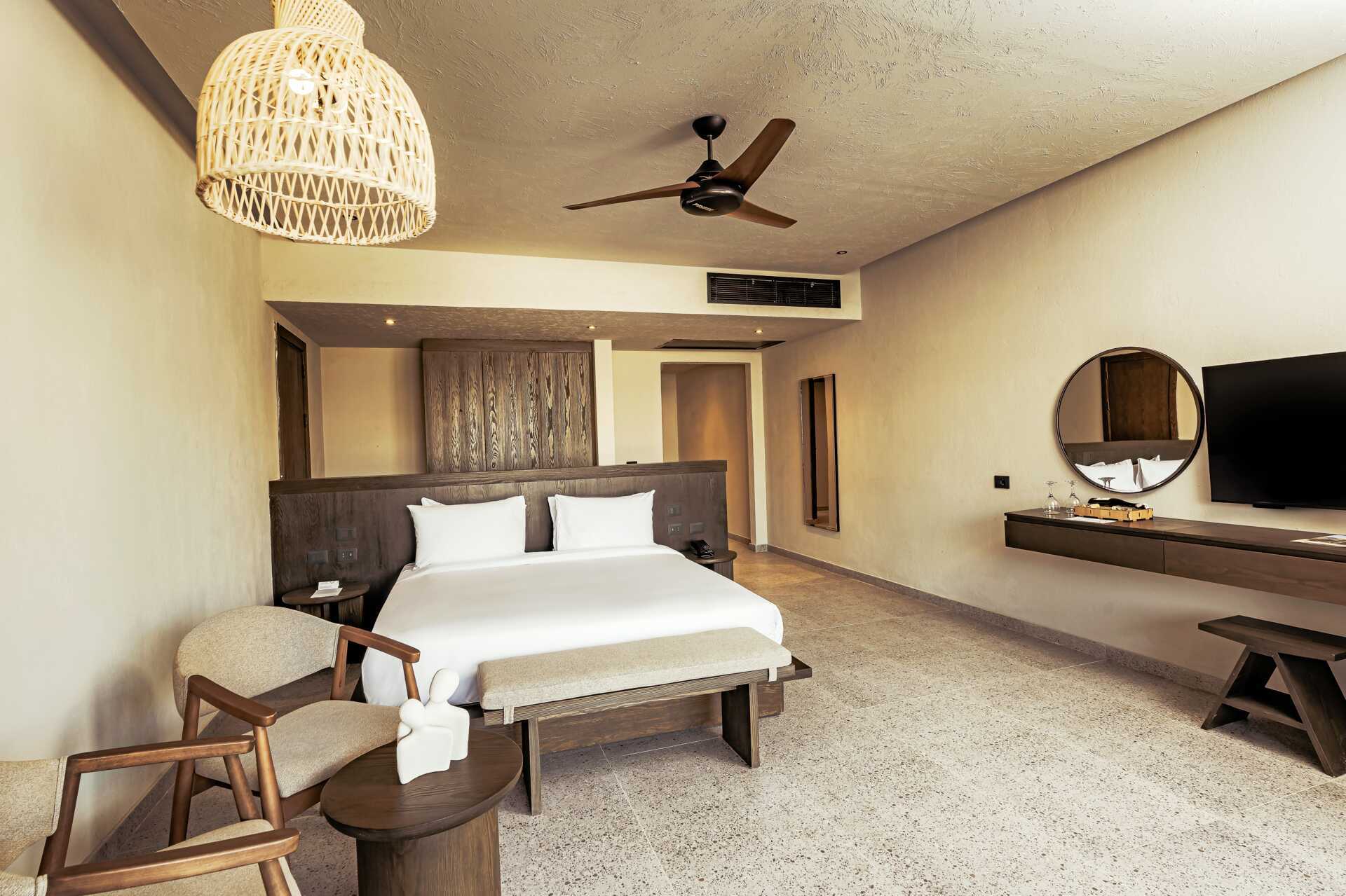 Suite met terras op de begane grond en zeezicht. Een tweepersoonsbed of twee eenpersoonsbedden. Mogelijkheid tot extra bedden in de vorm van een slaapbank. Wifi, airconditioning en kluisje inbegrepen. Minibar tegen betaling. Waterkoker, koffie en thee. Tv met internationale zenders. Föhn. Badkamer met douche en toilet. Schoonmaak 7 keer per week.