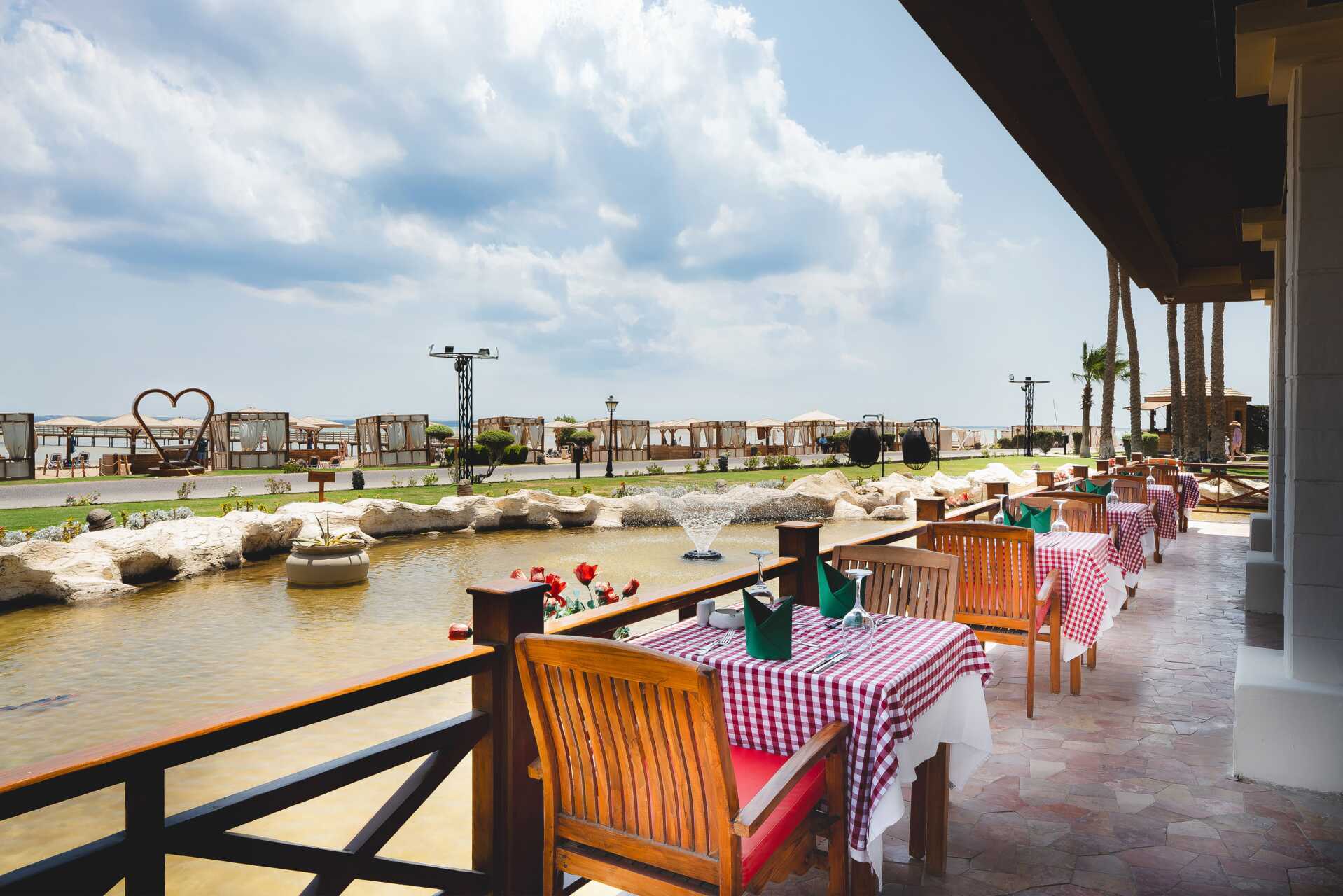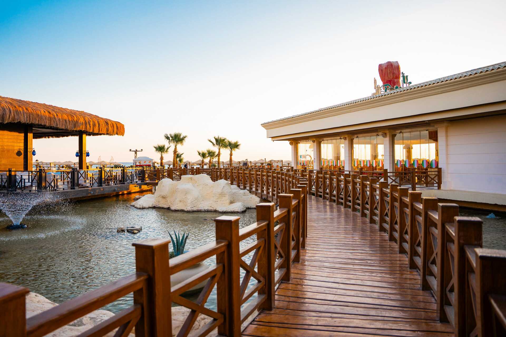 Er zijn verschillende restaurants en bars om uit te kiezen tijdens je verblijf. De buffetrestaurants The Palm & Waves serveren ontbijt, lunch en diner en er zijn ook 4 à la carte restaurants die Italiaanse, Mexicaanse, Indiase en Turkse gerechten serveren. De Indiase en Turkse restaurants maken geen deel uit van het All Inclusive programma van het hotel. De Italiaanse en Turkse à la carte restaurants liggen aan het strand. Elke avond heeft de Palm een thema zoals zeevruchtenavond of barbecueavond. Er geldt een dresscode in de restaurants tijdens het diner (netjes gekleed). Het hotel heeft ook een oosters café met shisha en verschillende bars.