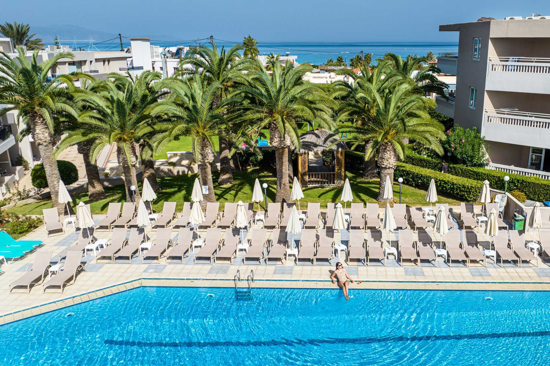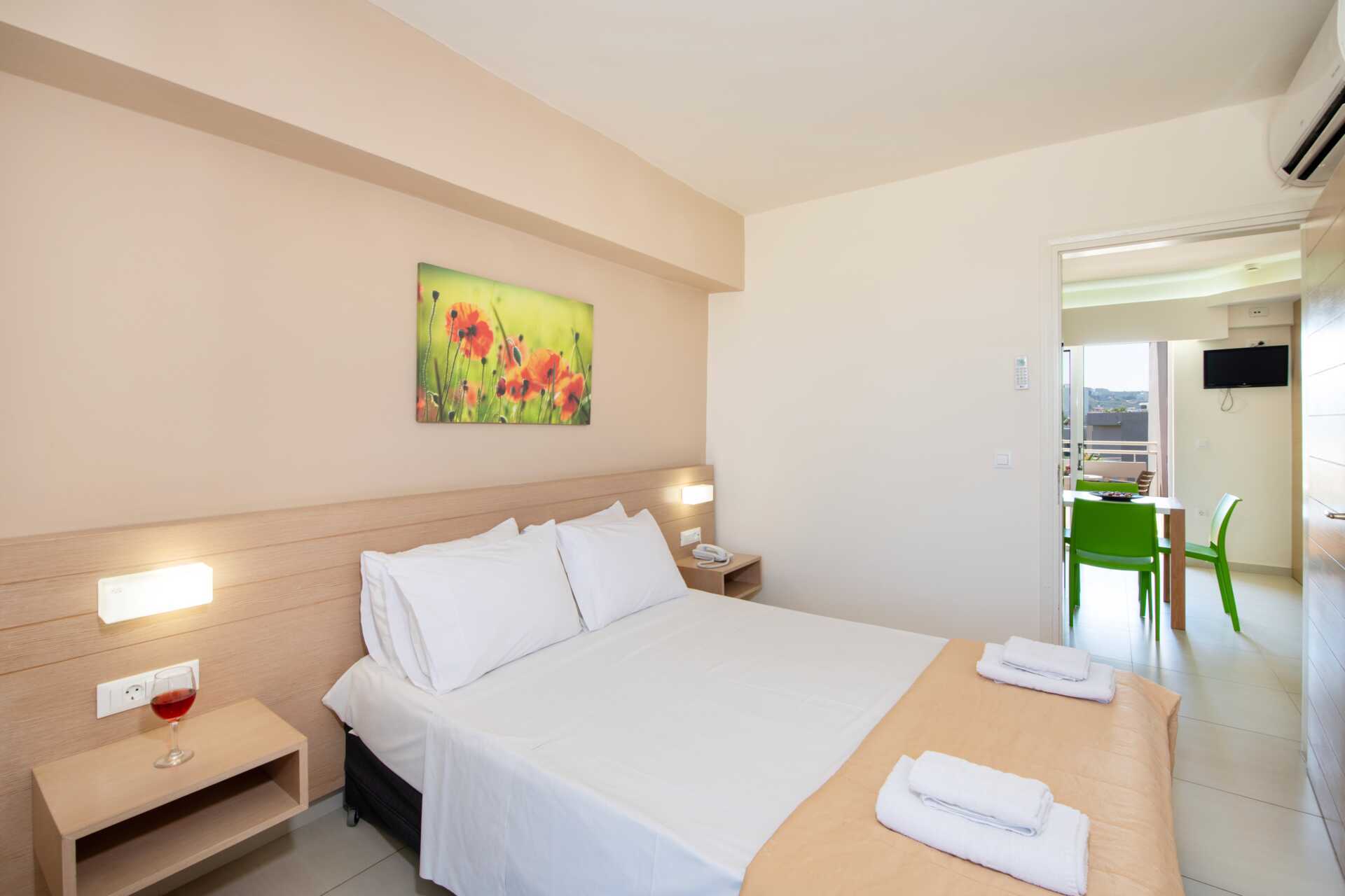 Studios van verschillende grootte. Balkon of grondterras. Bijna alle appartementen, met uitzondering van enkele appartementen met een grondterras, zijn gerenoveerd. Sommige appartementen hebben een aantal treden om bij het appartement te komen. Sommige appartementen met een grondterras hebben een paar treden omhoog naar de patio. Slaapkamer met gecombineerde minikeuken. Twee eenpersoonsbedden. Mogelijkheid voor extra bed in eenpersoonsbed. Minikeuken met kookplaten, magnetron, waterkoker, koffiezetapparaat, koelkast en basiskeukengerei. Wifi, airconditioning en kluisje inbegrepen. Tv met internationale zenders. Föhn. Badkamer met douche en toilet. Schoonmaak 6 keer / week.