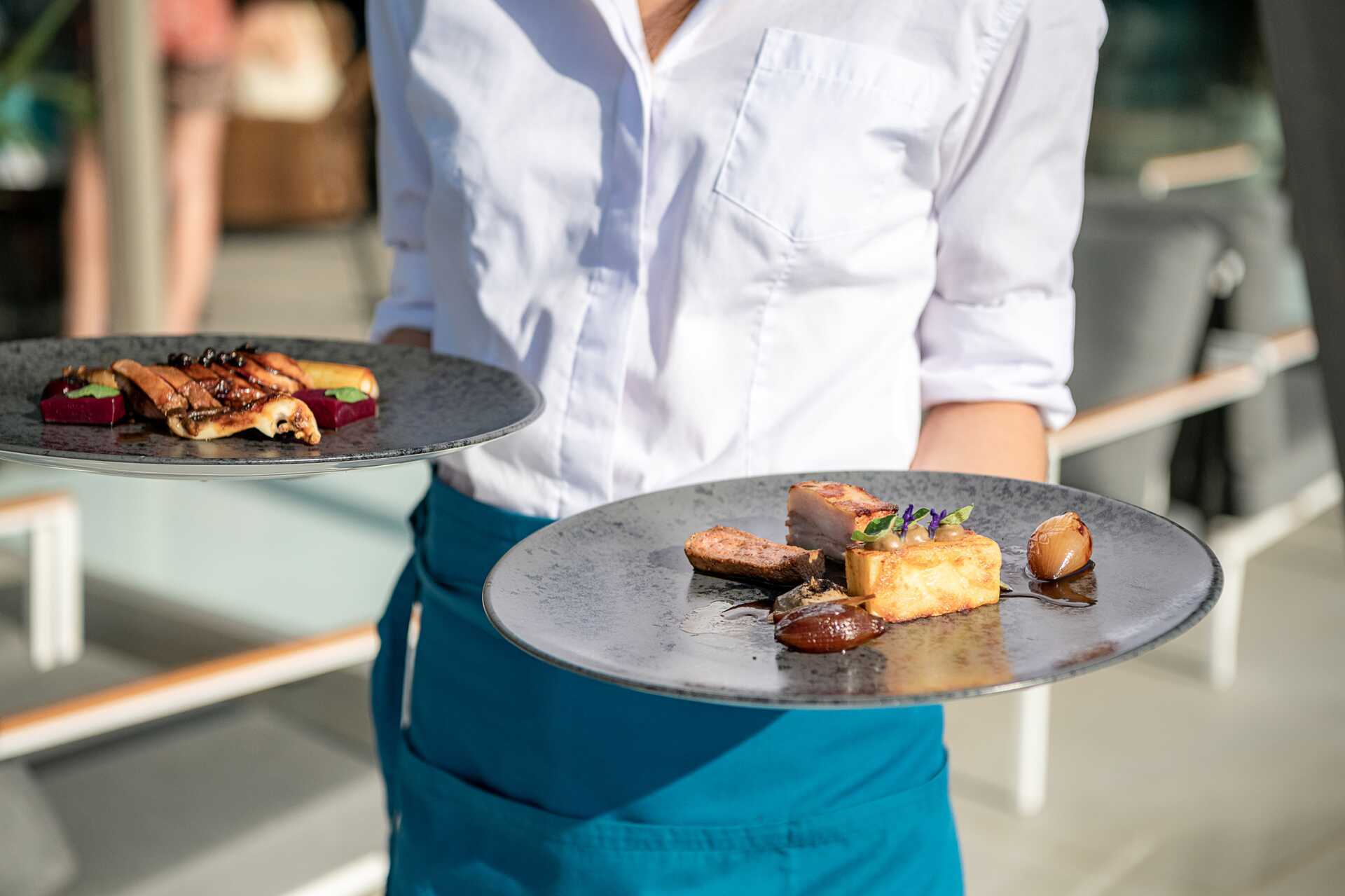 Het hotel beschikt over een buffetrestaurant waar je kunt ontbijten en dineren. Het dinerbuffet heeft een paar keer per week een ander thema. De lunch wordt geserveerd in de bar bij het zwembad. Het à-la-carterestaurant Thymari is geopend voor het diner en serveert het beste uit de mediterrane keuken, maar ook internationale gerechten (tafelreservering vereist). Een lobbybar die geopend is van laat in de middag tot laat in de avond.