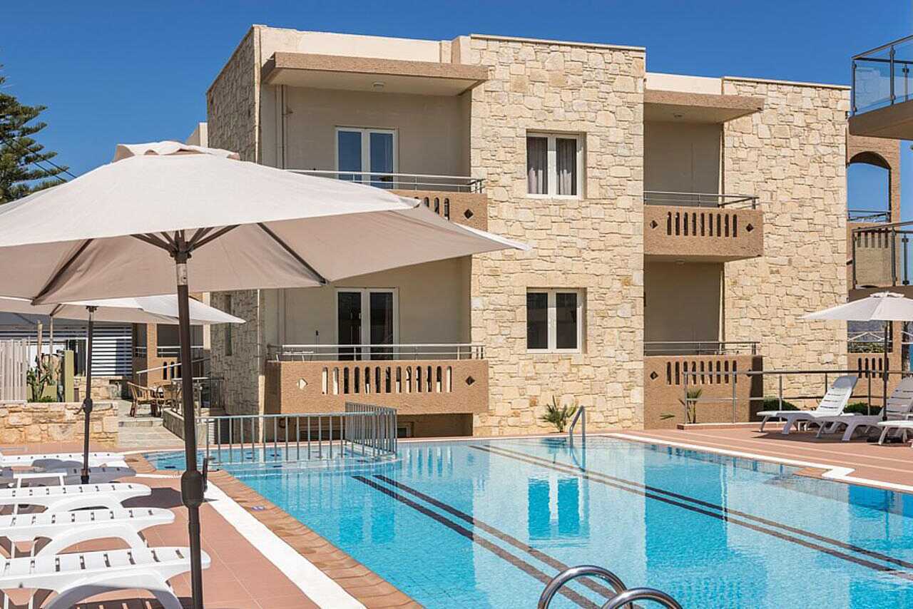 Welkom bij Marine Claire, een gezellig appartementenhotel midden in het centrum van Kato Stalos. Hier verblijf je vlak boven het strand en een tip is om een appartement met zeezicht te boeken voor een fantastisch uitzicht. Hier wacht ook een mooi zwembad op jou. Als je wat meer stadsgevoel wilt ervaren, kun je gemakkelijk de bus nemen naar Chania stad voor een groter aanbod aan restaurants en winkels.