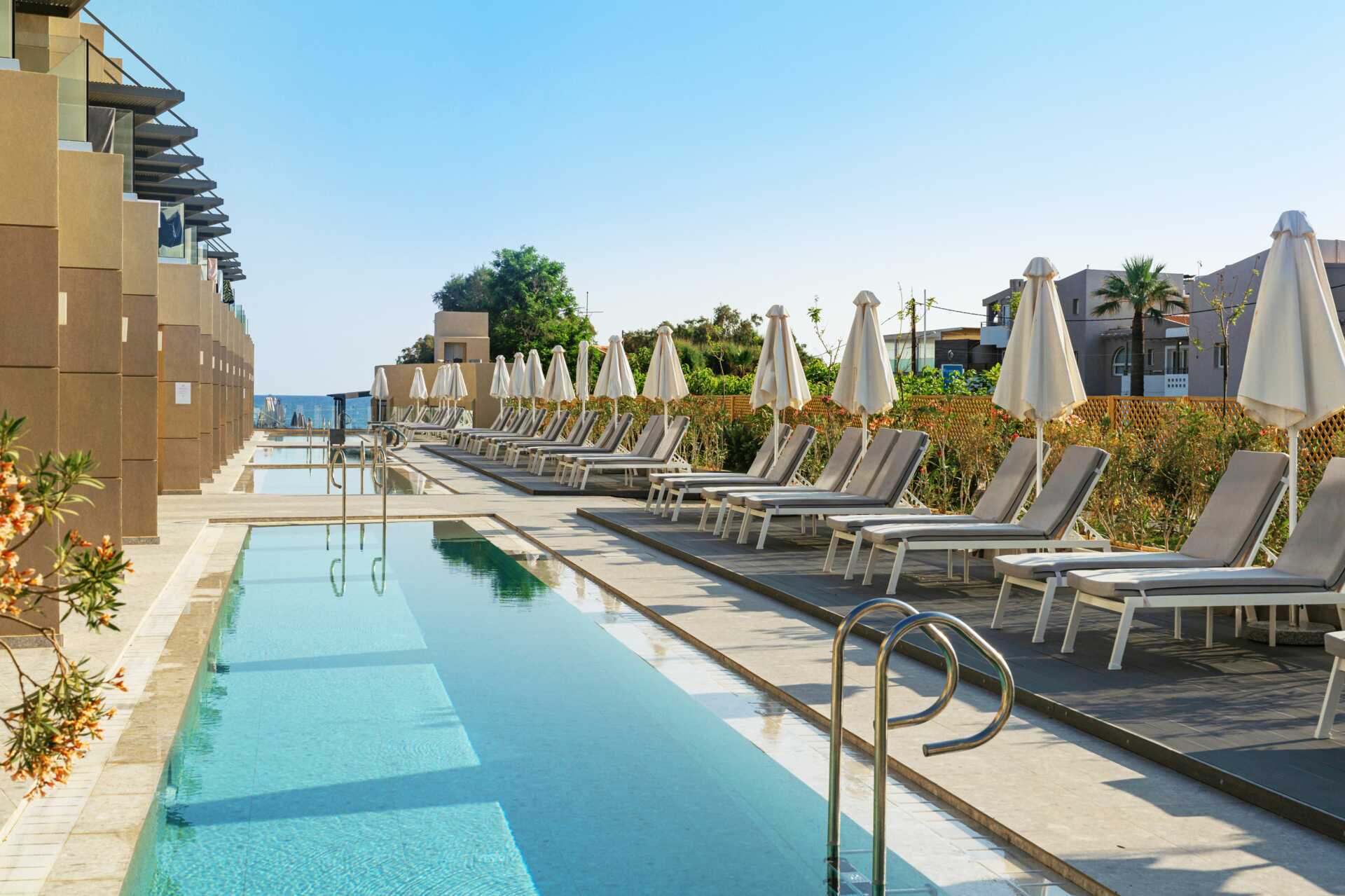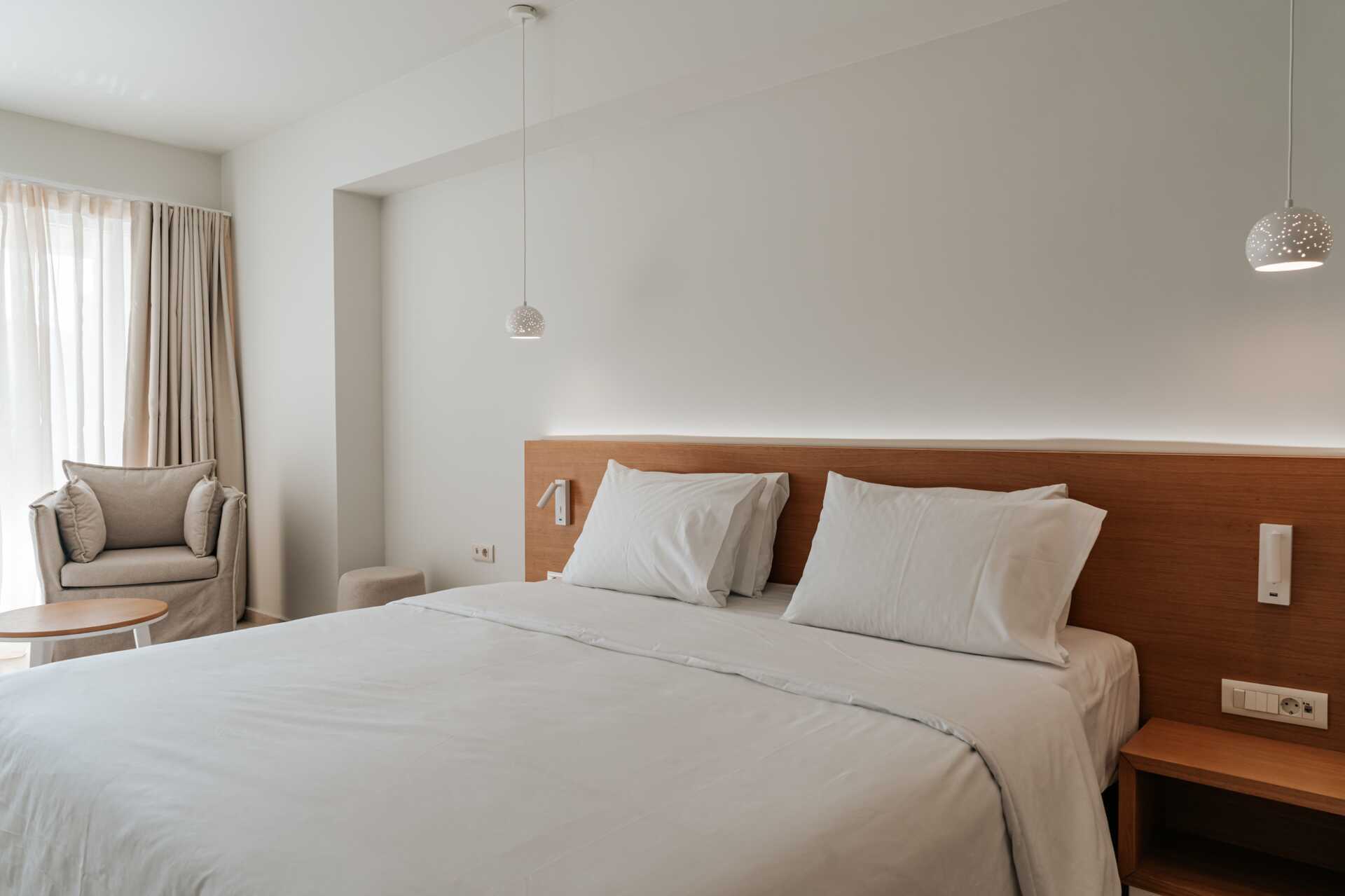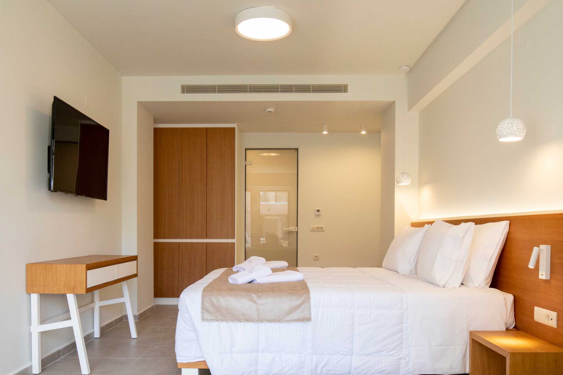 Tweepersoonskamer met toegang tot gedeeld zwembad. Een tweepersoonsbed of twee eenpersoonsbedden. In sommige kamers is het mogelijk een extra bed voor een derde persoon te plaatsen. Wifi, airconditioning en kluisje inbegrepen. Koelkast, die je als minibar kunt gebruiken (hiervoor moet dan wel betaald worden). Waterkoker. Tv met internationale zenders. Badkamer met douche en apart toilet. Schoonmaak 6 keer/week.