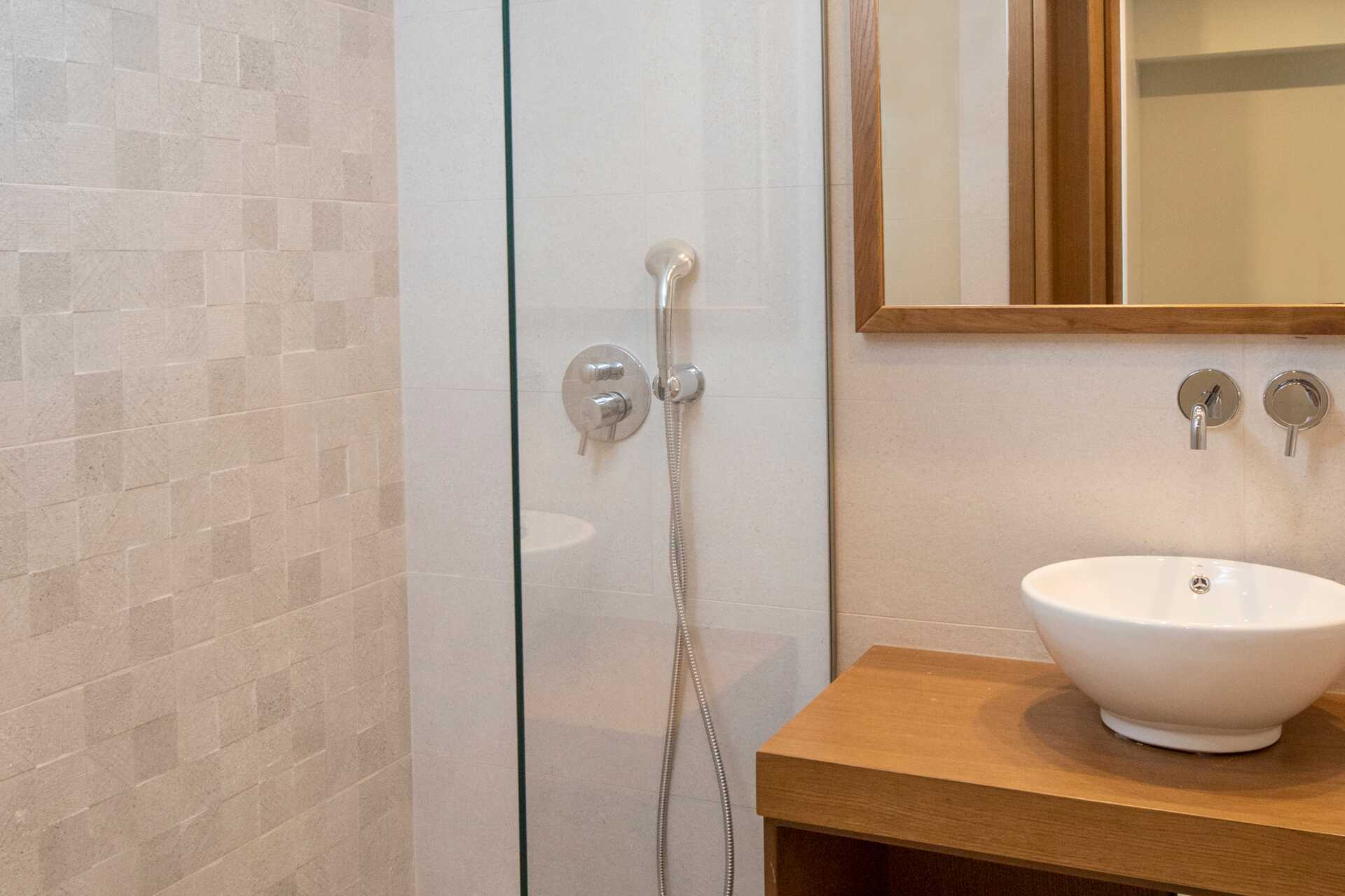 Tweepersoonskamer op de benedenverdieping met terras op de begane grond. Drie treden leiden naar de kamer. Een tweepersoonsbed of twee eenpersoonsbedden. Wifi, airconditioning en kluisje inbegrepen. Koelkast, die je als minibar kunt gebruiken tegen een toeslag Waterkoker. Tv met internationale zenders. Badkamer met douche en apart toilet. Schoonmaak 6 keer/week.