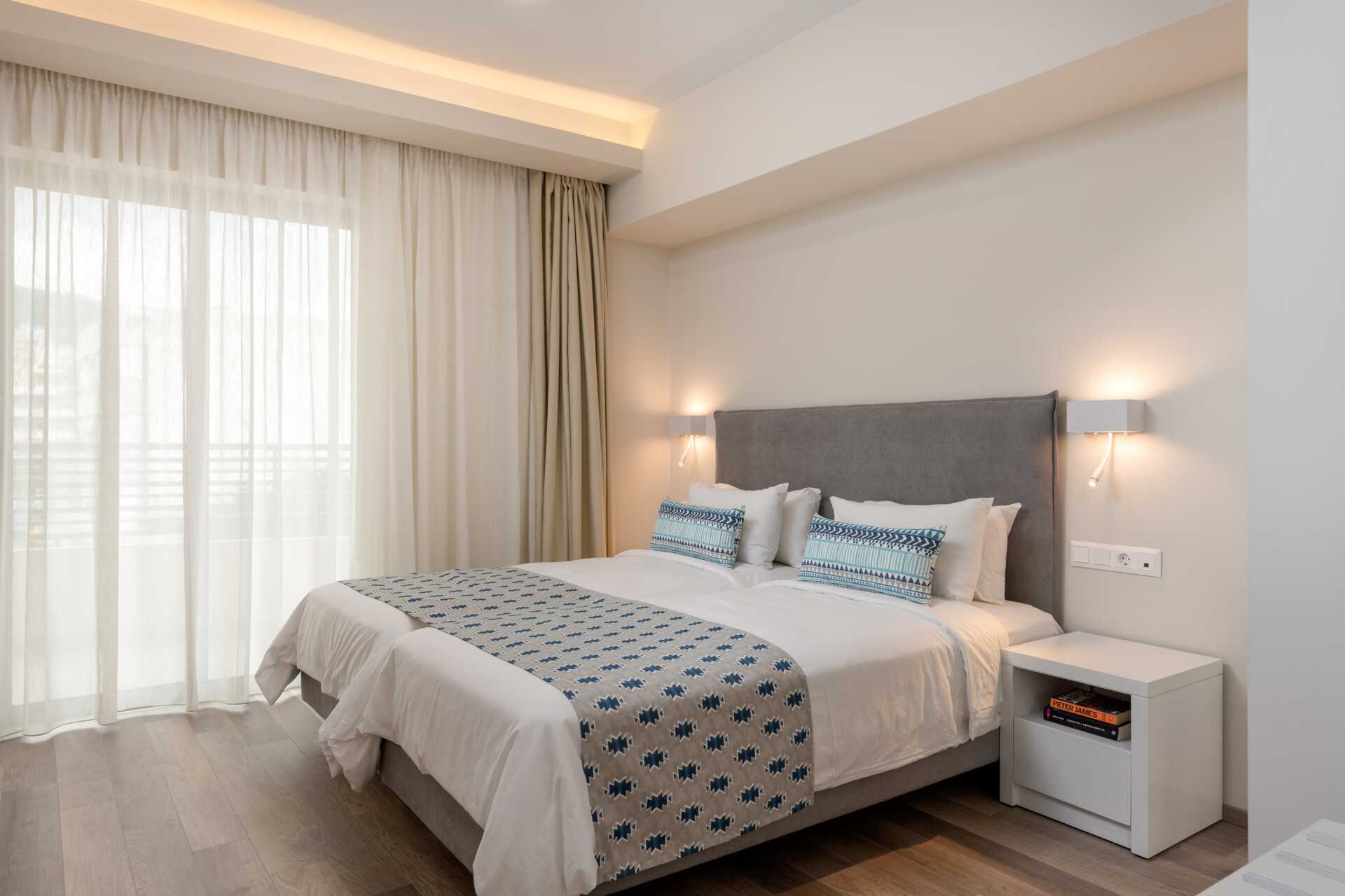 Superior tweekamerappartement met balkon of met balkon of terras met uitzicht op het zwembad. Een slaapkamer en een gecombineerde woonkamer met kitchenette. Twee eenpersoonsbedden. Mogelijke extra bedden in slaapbank. Minikeuken met kookplaten, koelkast, waterkoker, koffiezetapparaat en basiskeukengerei.. Dagelijkse bijvulling van koffie en thee. Bij aankomst staat er een fles wijn, een fles water en fruit in het appartement. Airconditioning en wifi inbegrepen. Kluis tegen betaling. TV met internationale zenders. Badjassen en slippers Föhn. Badkamer met douche en wc. Schoonmaak 7 keer/week.