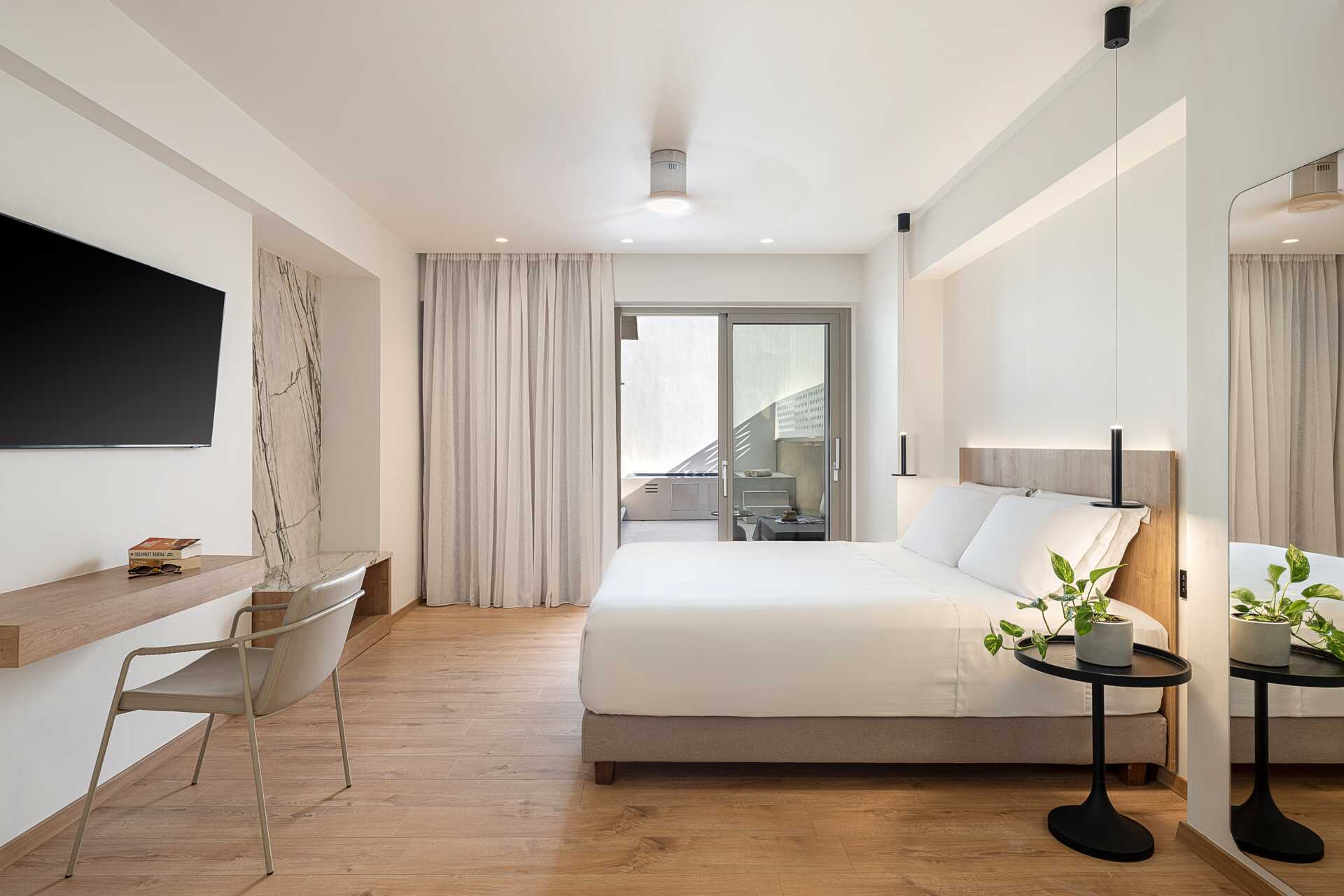 Superior kamer met balkon of terras en een jacuzzi, tafel en ligstoelen op het terras. Een tweepersoonsbed. Wifi, airconditioning en kluisje inbegrepen. Koelkast. Waterkoker. Tv met internationale zenders. Föhn. Föhn. Badkamer met douche en toilet. Schoonmaak 6 keer/week. Kinderen jonger dan twee jaar zijn inbegrepen in het maximale aantal personen in de kamer.