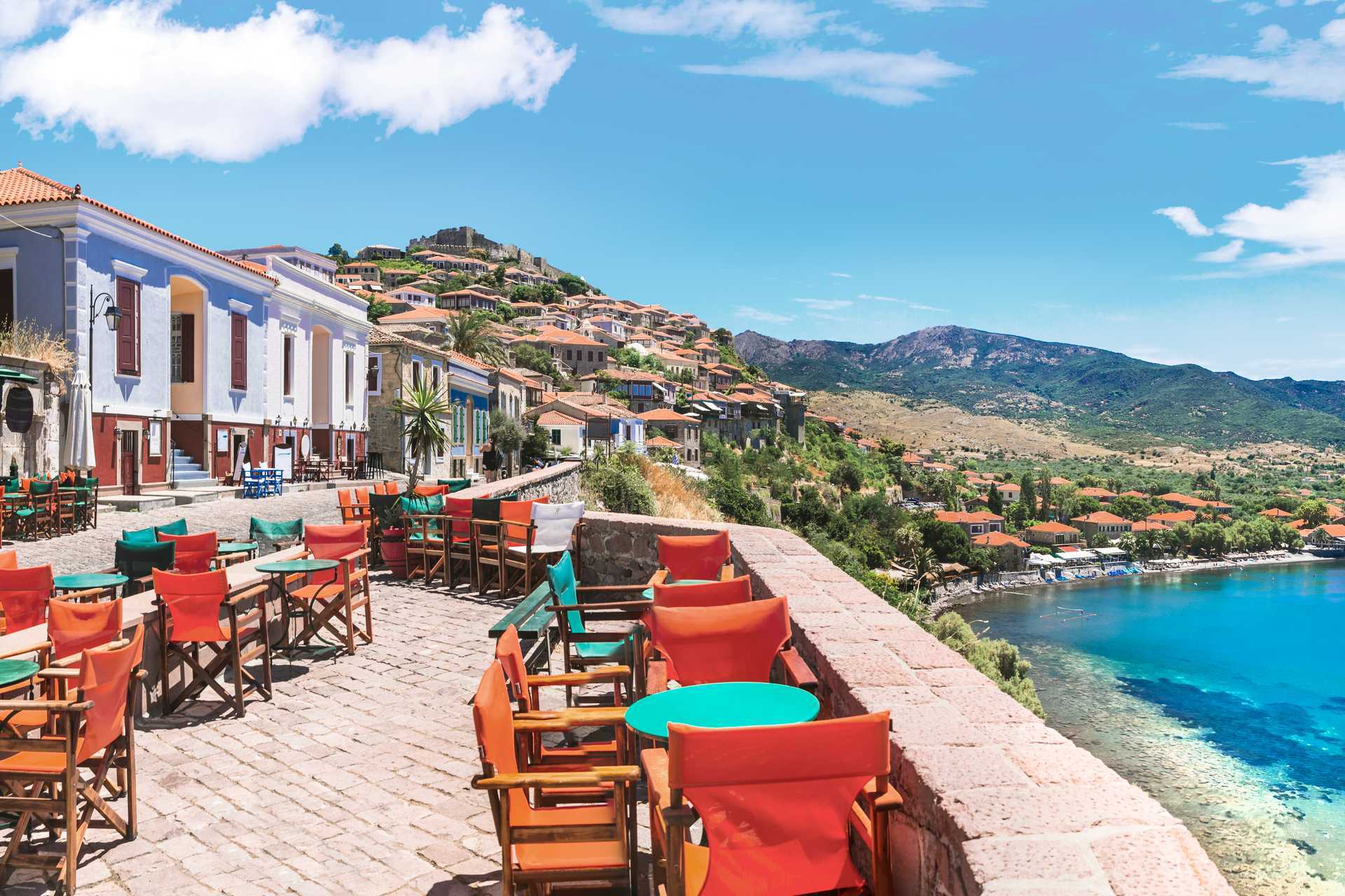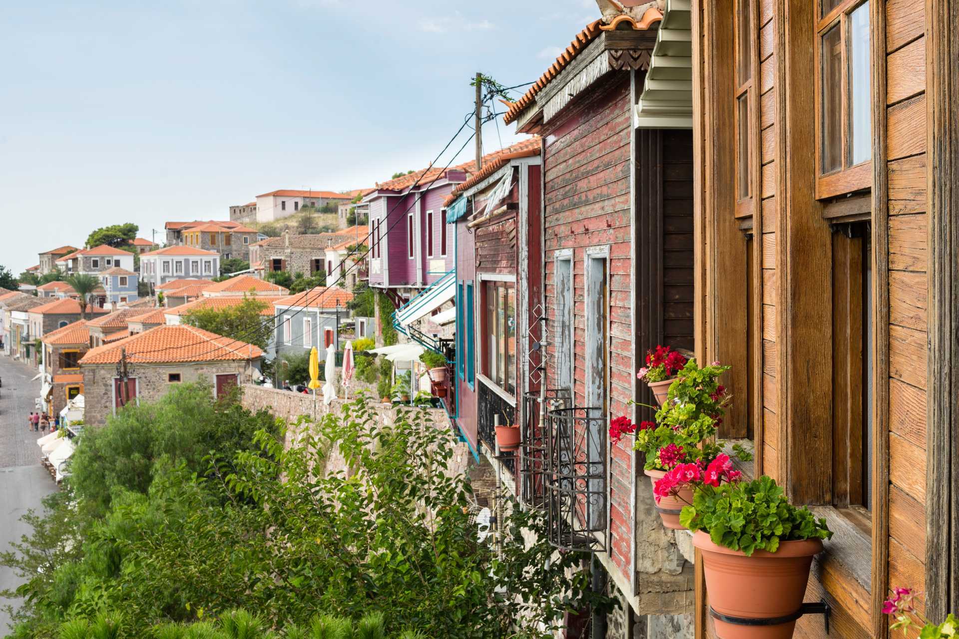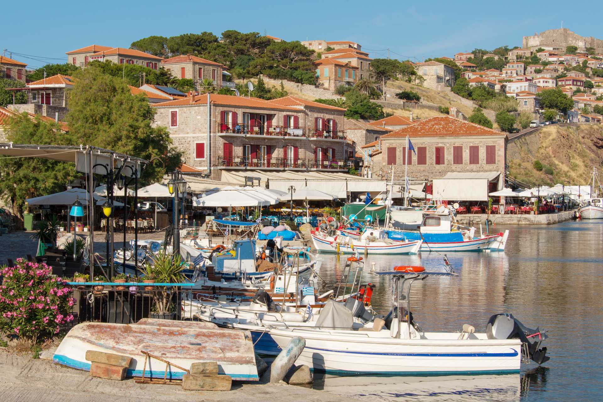 Molyvos - het kleurrijkste stadje van Lesbos met zijn bijzondere huizen, smalle en steile steegjes, vele trappen en een heerlijke sfeer in de haven waar de vissersboten en taverna's op een rij staan. Langs het strand dat over de hele lengte van de stad loopt, vind je verschillende gezellige restaurants waar je kunt eten, drinken en op de eerste rij kunt zitten voor de prachtige zonsondergang.