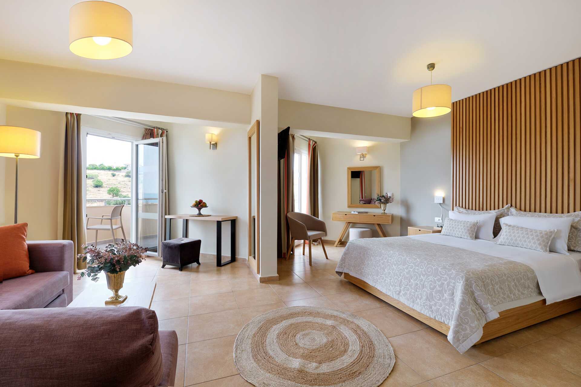 Juniorsuite met balkon. De junior suite bestaat uit een slaapkamer en een woonkamer (met een deur tussen de kamers) of een slaapkamer met een woonkamergedeelte. Een tweepersoonsbed of twee eenpersoonsbedden. Mogelijkheid voor een extra bed in de vorm van een slaapbank. Wifi, airconditioning en kluisje inbegrepen. Koelkast. Waterkoker, koffie en thee. Nespresso-apparaat. Tv met satellietzenders. Hotelslippers. Föhn. Badkamer met douche en toilet. Schoonmaak 7 keer/week.