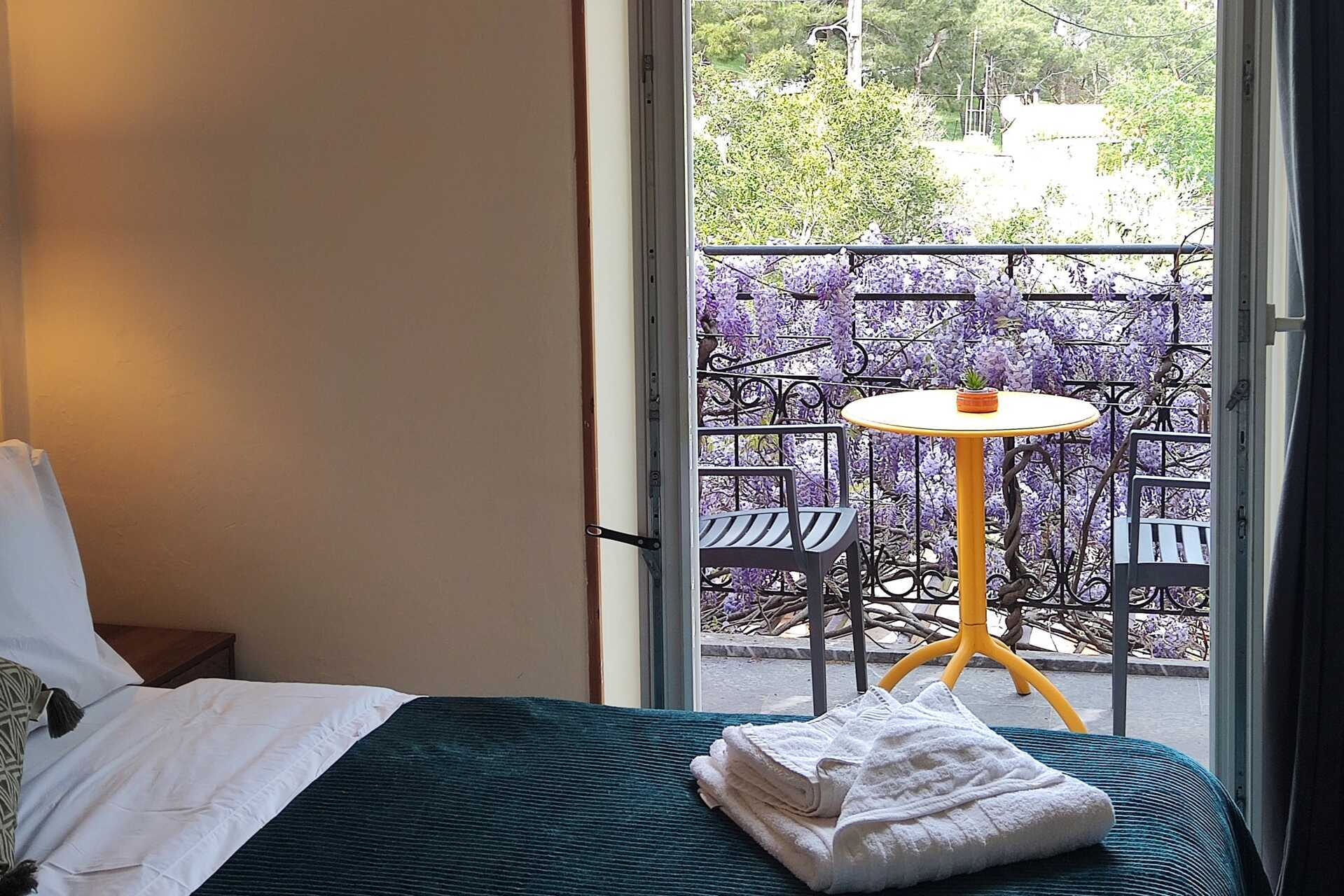 Tweepersoonskamer met balkon en Uitzicht op de stad. Eén tweepersoonsbed en één eenpersoonsbed. Wifi, airconditioning en kluisje inbegrepen. Koelkast. Waterkoker. Föhn. Badkamer met douche en toilet. Schoonmaak 6 keer/week.