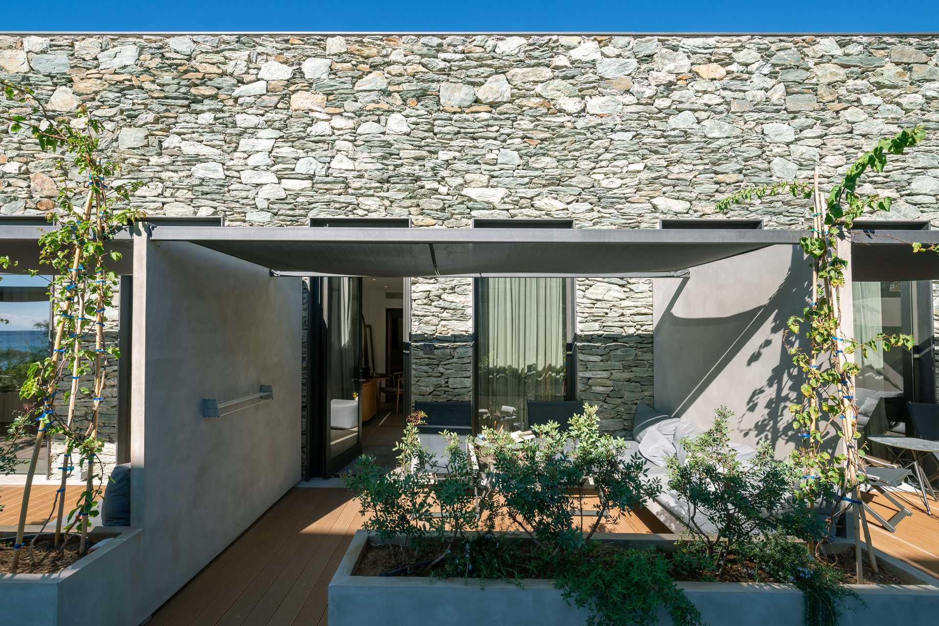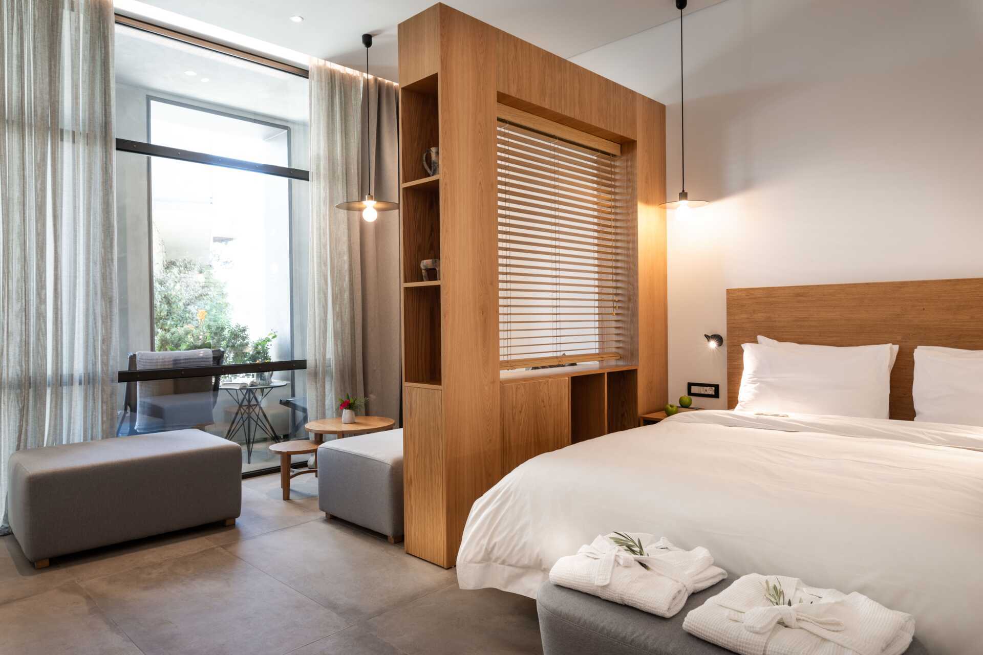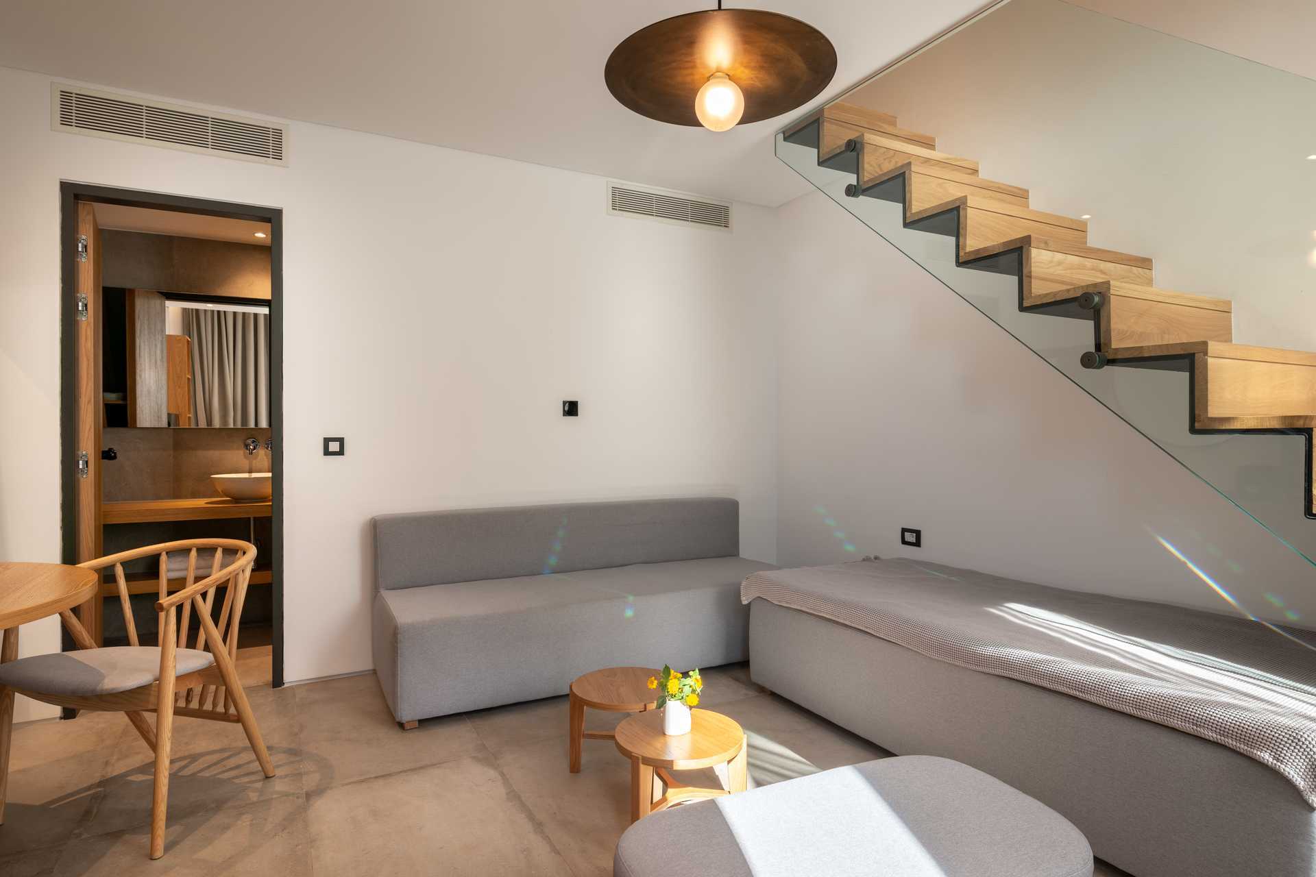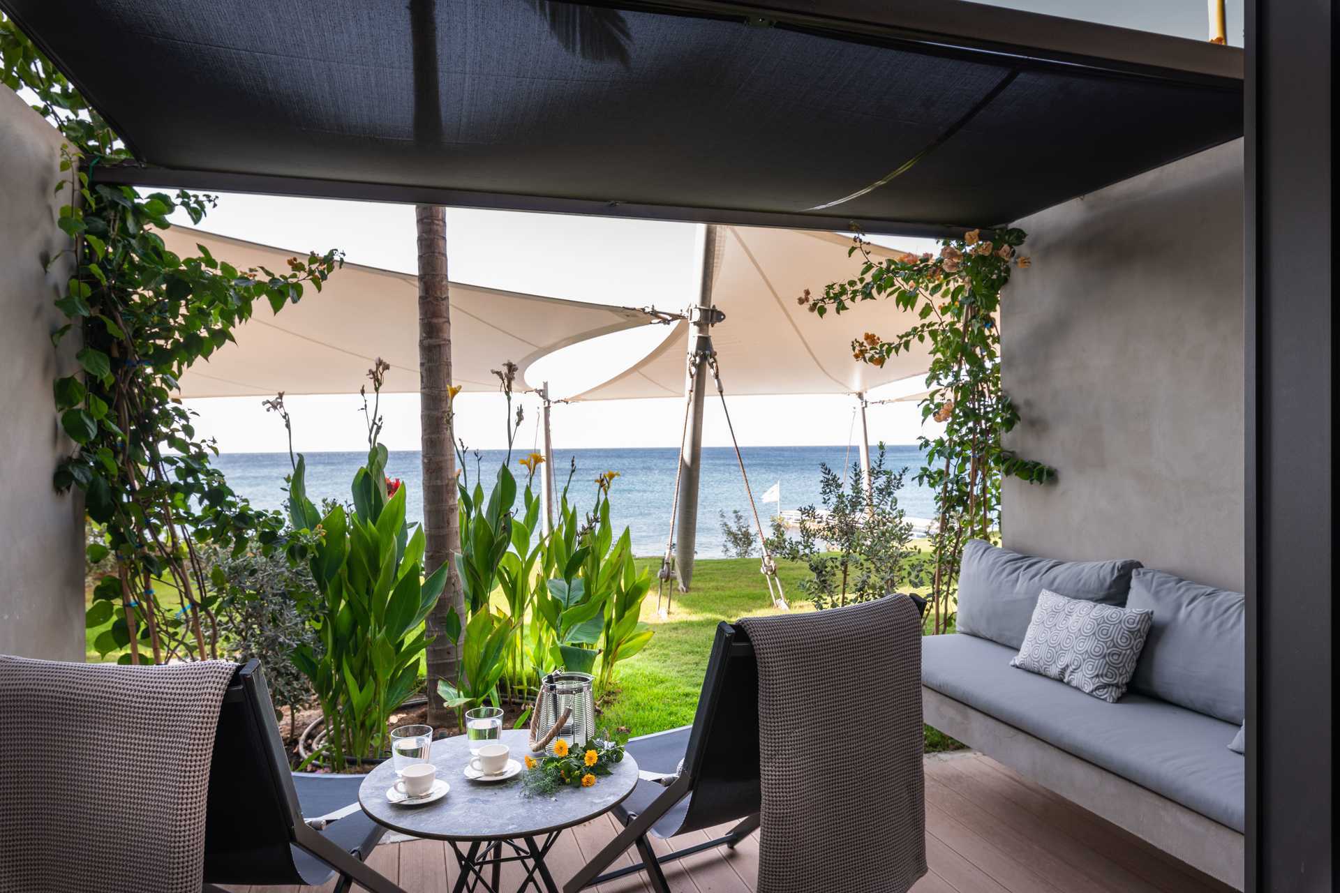 Junior suite met terras, sommige met zeezicht. Het slaapcomfort is uitzonderlijk met een comfortabel tweepersoonsbed en linnengoed van hoge kwaliteit. Wifi, airconditioning en kluisje inbegrepen. Minibar/koelkast. Nespresso-apparaat, vier koffiecapsules zijn inbegrepen, extra capsules zijn te koop bij de receptie. Er is een comfortabele zithoek in de kamer en op de patio. Bluetooth-luidsprekers kunnen tegen een toeslag worden geleend bij de receptie. Haardroger. Badkamer met douche en toilet. Om de dag schoonmaak.
