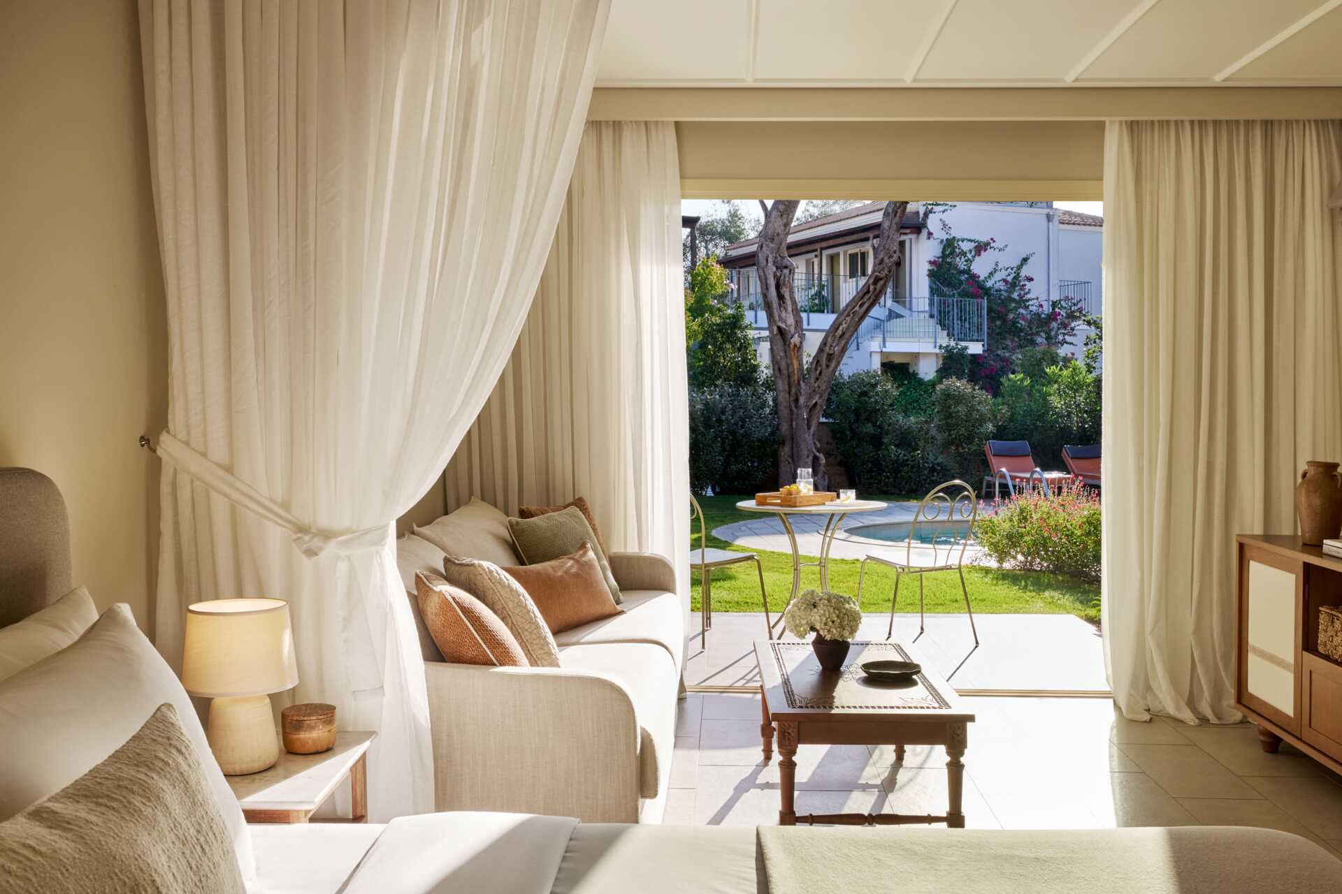 Deluxe suite met balkon of terras. De suite bestaat uit een slaapgedeelte en een woonkamer die middels een schuifdeur kunnen worden gescheiden. Een tweepersoonsbed. Mogelijkheid voor extra bedden in slaapbank. Kussenmenu. Wifi, airconditioning en kluisje inbegrepen. Minibar. Nespresso-apparaat, capsules tegen betaling. Waterkoker en koffie en thee. Tv met internationale zenders. Badjassen en hotelslippers. Föhn. Badkamer met douche en toilet. Schoonmaak 7 keer/week. De suites bevinden zich in een apart gebouw en om het strand en andere delen van het hotel te bereiken, moet je een kleine weg met beperkt verkeer oversteken.