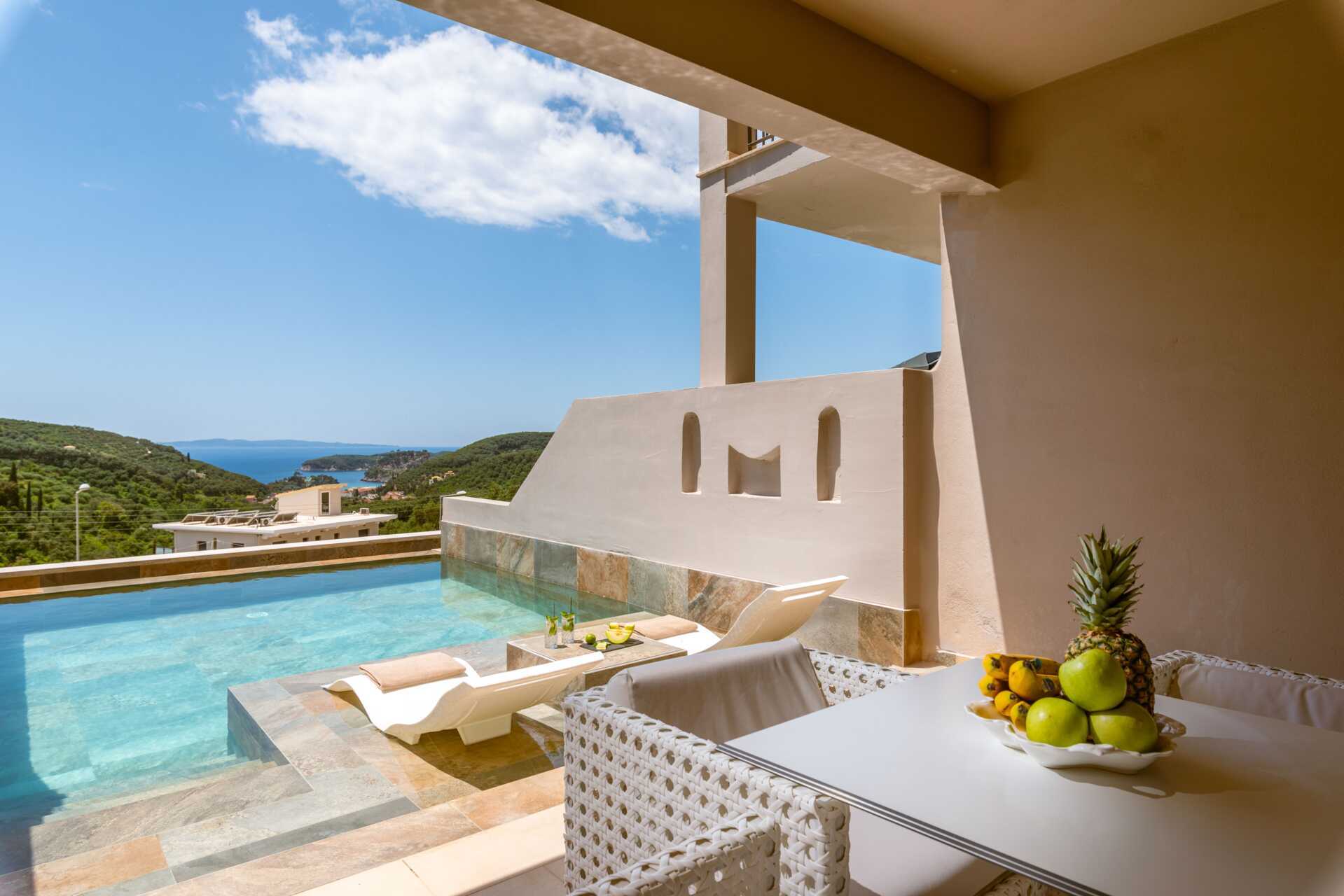 Deluxe suite met terras en privé zwembad. Een tweepersoonsbed. Mogelijkheid van extra bed door slaapbank. Wifi, airconditioning en kluisje inbegrepen. Koelkast. Ketel. Koffiezetapparaat. Broodrooster. Tv met internationale zenders. Badjassen en hotelslippers. Föhn. Badkamer met bad of douche en toilet. 7 keer/week schoonmaak.