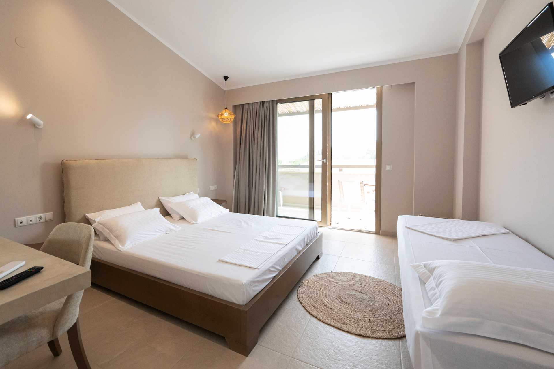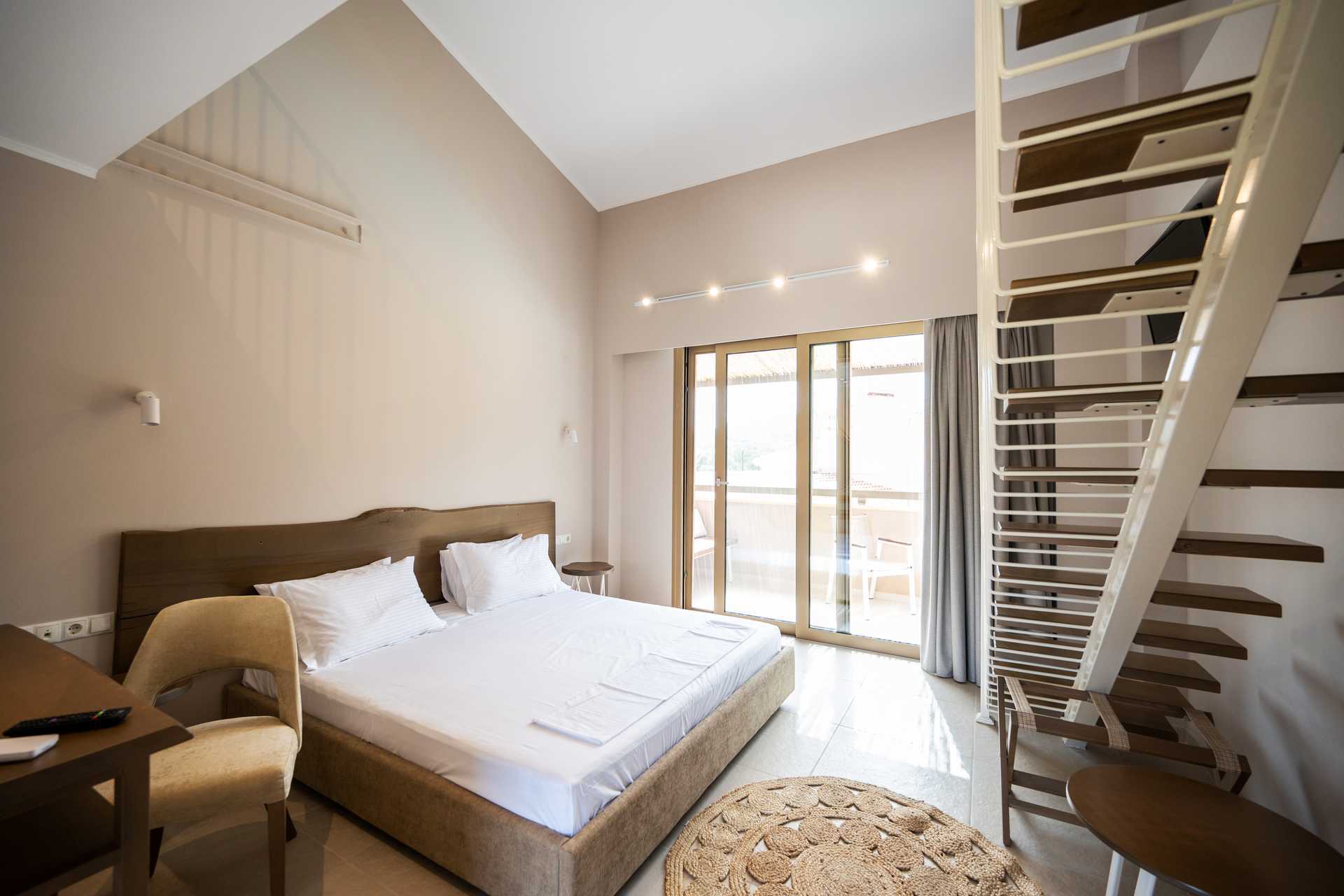 Superior kamer met balkon of terras. De kamers bevinden zich in een gebouw dat is gebouwd voor de zomer van 2025. Een tweepersoonsbed. Wifi, airconditioning en kluisje inbegrepen. Koelkast. Waterkoker met koffie en thee. Tv met internationale zenders. Bluetooth-luidspreker. Strijkijzer en strijkplank. Badjassen en hotelslippers. Föhn. Badkamer met douche en toilet. Schoonmaak 7 keer/week.