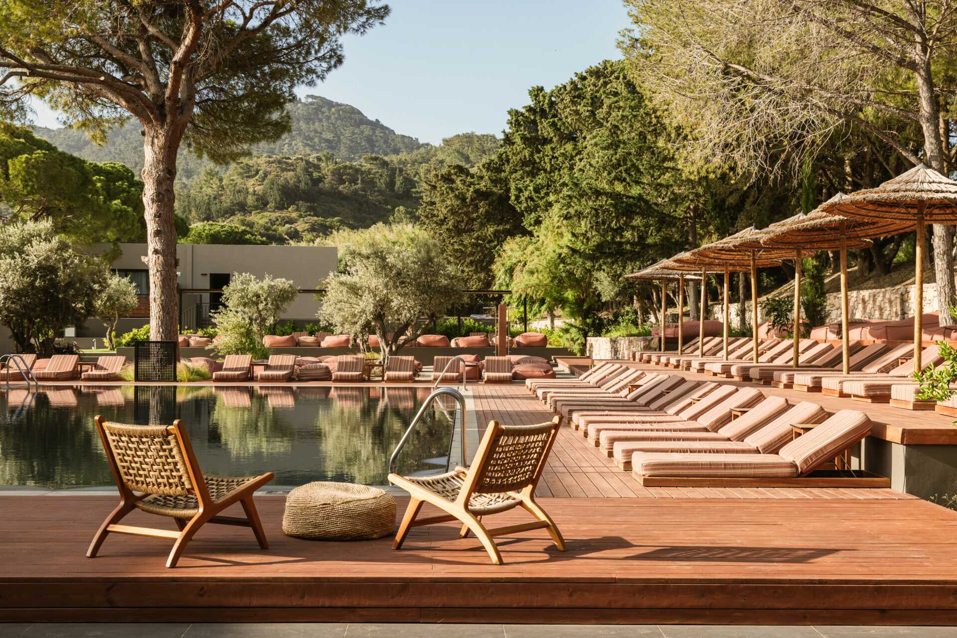 Zwembad, Parasol, Loungestoelen, Handdoeken voor bij het zwembad