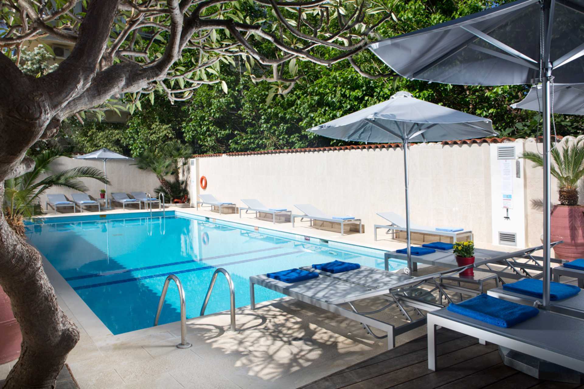 Zwembad, Parasol, Loungestoelen, Handdoeken voor bij het zwembad