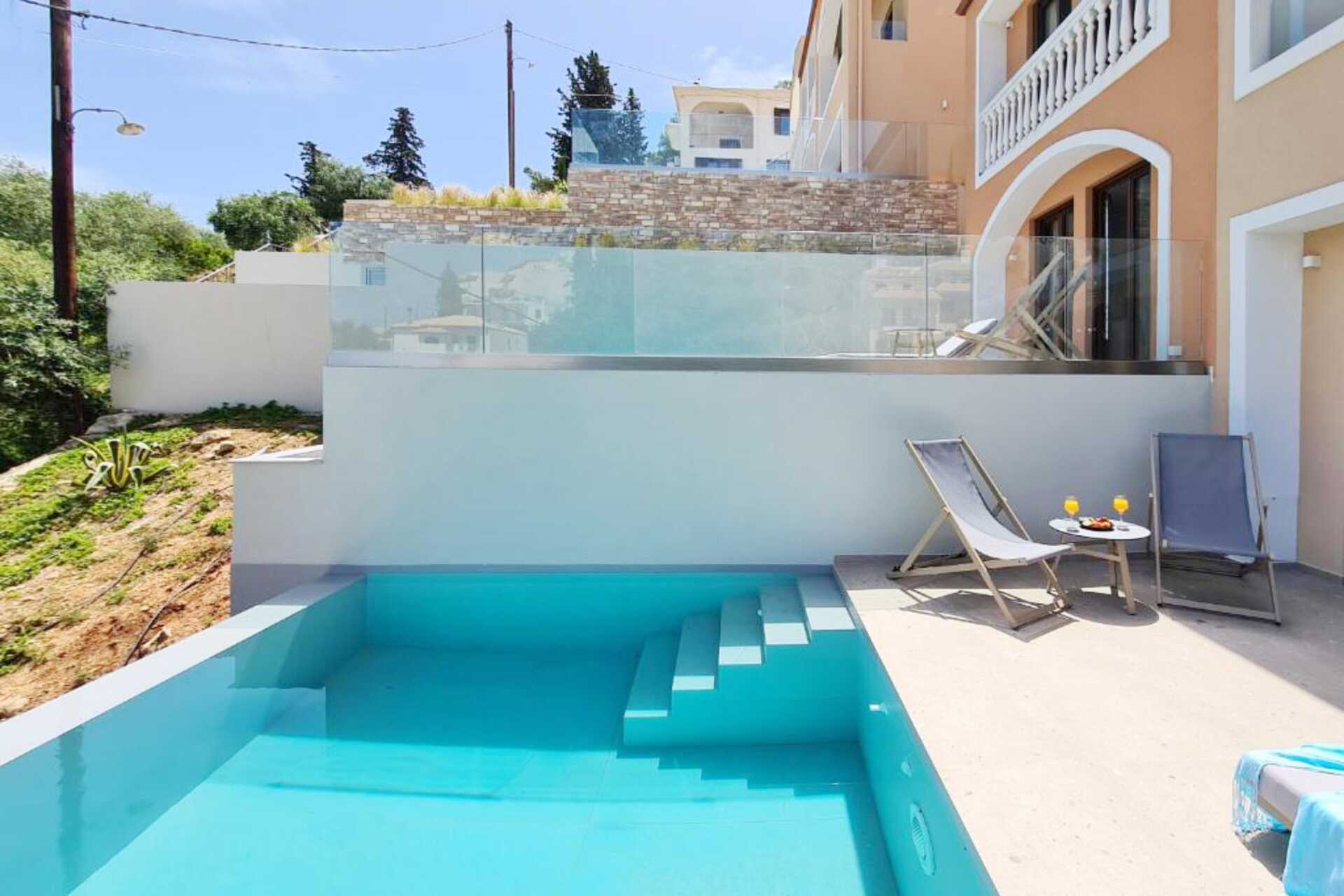 Suite met terras op de begane grond en privézwembad. Op het terras zijn stoelen en tafels aanwezig, evenals twee ligstoelen met matrassen. Trap naar beneden, het zwembad in. Op de entree verdieping is er een gecombineerde woonkamer met kitchenette en een badkamer met haardroger, douche en toilet. Boven is er een slaapkamer met een tweepersoonsbed en een badkamer met een haardroger, douche en toilet. Mogelijkheid tot twee extra bedden in de vorm van twee slaapbanken. Kitchenette met kookplaat, koelkast, magnetron, waterkoker, broodrooster, espressomachine en basiskeukengerei. Wifi, airconditioning en kluisje inbegrepen. Een televisie met internationale zenders in elke kamer. Schoonmaak 5 keer/week. Kinderen jonger dan twee jaar worden meegerekend in het maximale aantal personen in de suite.