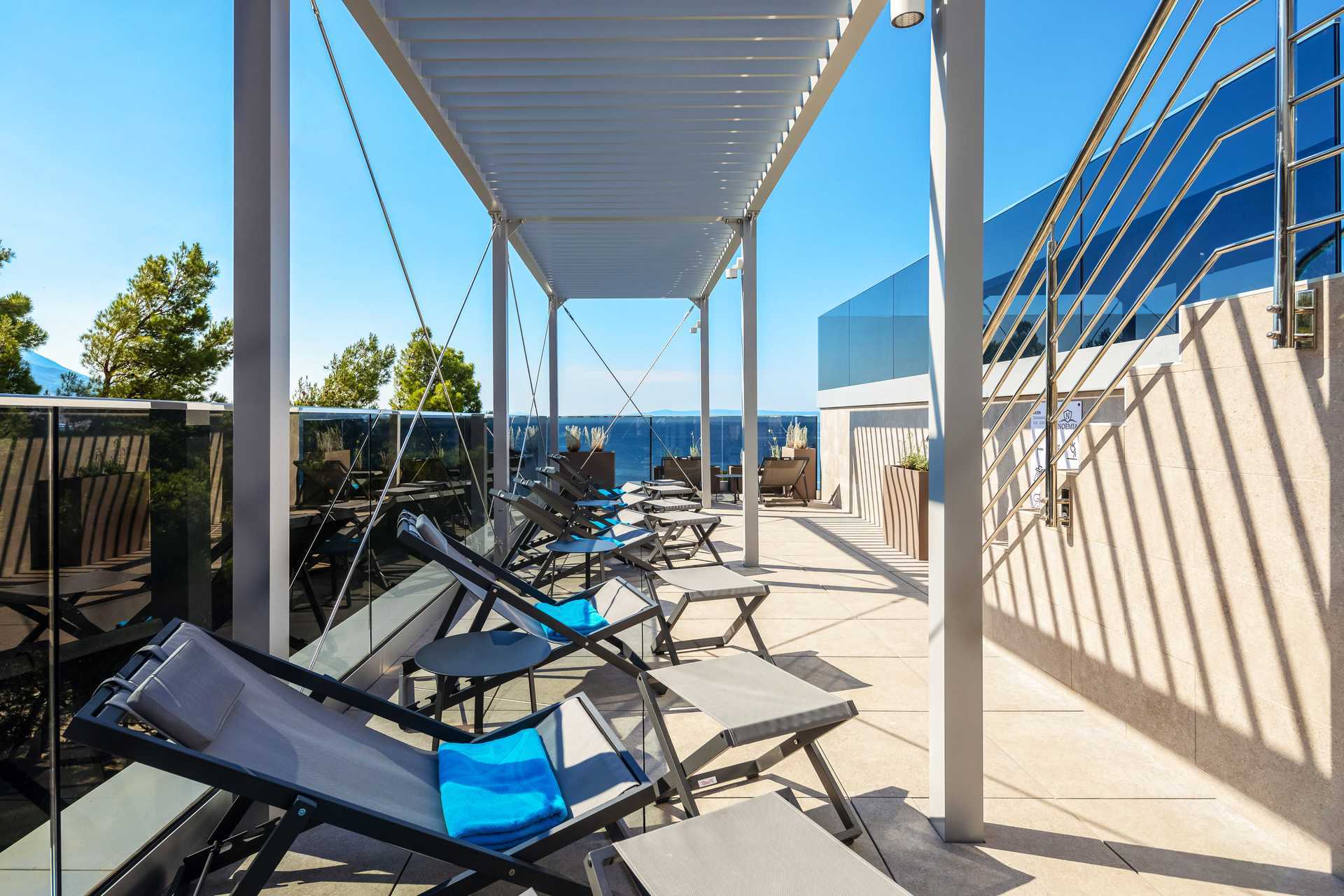 Als je liever zwemt, heeft het zwembad op het dak van het hotel een prachtig uitzicht, deels over zee. Er zijn een paar ligstoelen en parasols bij het zwembad. Badhanddoeken bij aankomst. Aan zee zijn ligstoelen en parasols te huur.