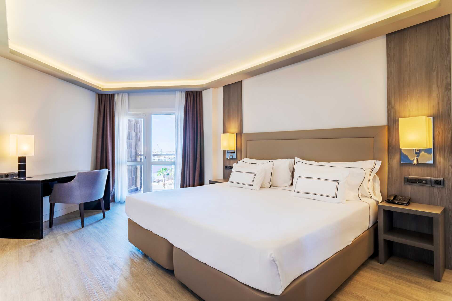 Tweepersoonskamer met balkon en uitzicht op zee. Een tweepersoonsbed of twee eenpersoonsbedden. Mogelijkheid voor een extra bed in een eenpersoonsbed. Wifi en airconditioning inbegrepen. Kluisje tegen betaling. Koelkast. Tv met internationale zenders. Föhn. Badkamer met bad of douche en toilet. Schoonmaak 5 keer/week.