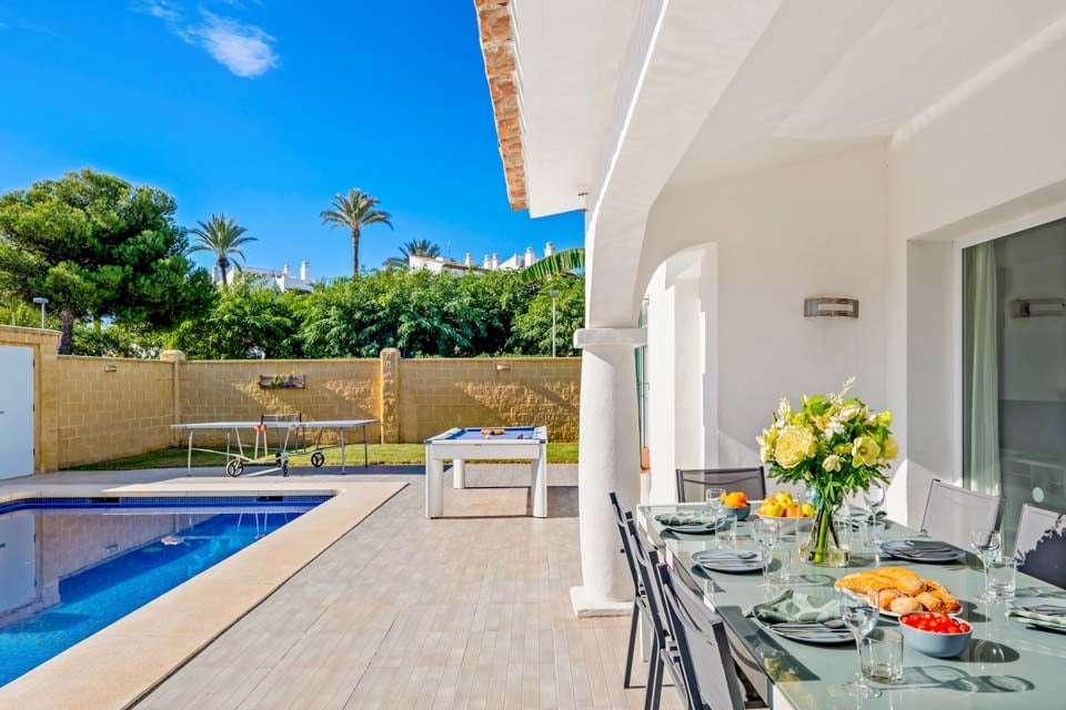 Begin uw vakantie zoals u dat wilt: neem een duik in uw privézwembad. Kies voor een ontspannende duik in het kalme, saffierblauwe water en voel hoe de rimpelingen en golven langzaam over u heen spoelen terwijl u de middaghitte trotseert. U kunt er ook voor kiezen om samen met uw geliefden te spetteren en onvergetelijke herinneringen te creëren op een zonnige Spaanse middag.