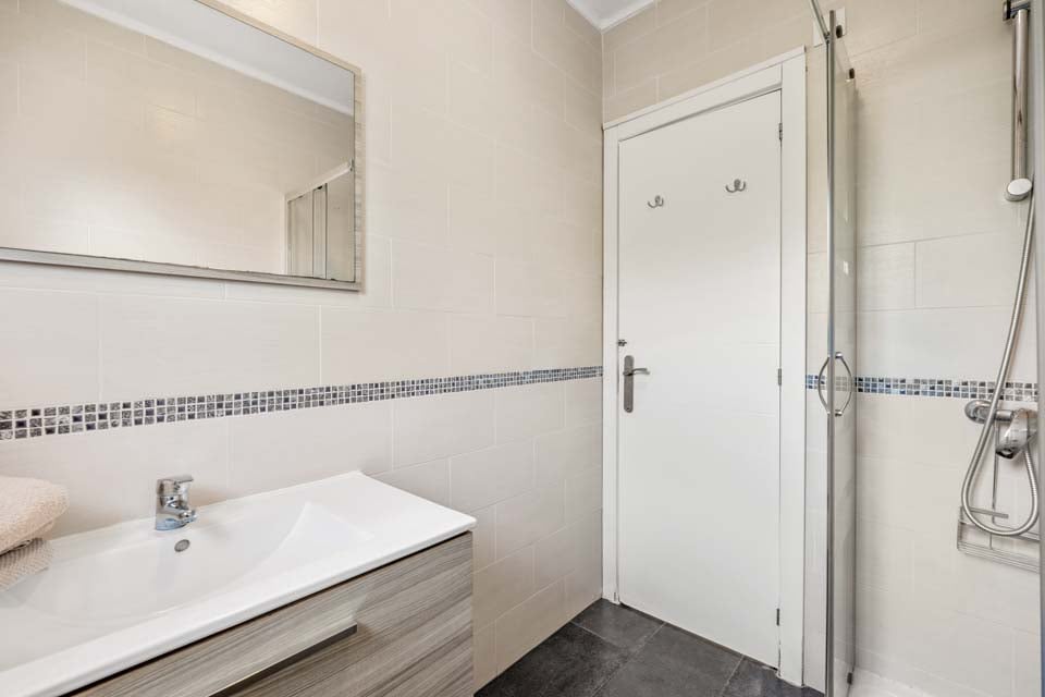 Om de villa te bereiken is er een pad van 200 cm breed met daarnaast 1 trede. De voordeur heeft een breedte van 80 cm, terwijl de deur naar het terras ook 80 cm breed is. Het pad naar het zwembad is 102 cm breed. Het terras is vlak en betegeld, met een grasveld. Er zit een kleine lip boven de terrasdeur. Dit is een villa op de begane grond. De deur van de hoofdslaapkamer is 70 cm breed, terwijl de deur van de ensuite badkamer 70 cm breed is. De deur naar de keuken/eetkamer is 70 cm breed en de deur naar de woonkamer is 173 cm breed. *Houd er rekening mee dat hoewel wij er alles aan doen om de verstrekte informatie juist te maken, er fouten kunnen optreden. Mocht u meer specifieke informatie over de villa nodig hebben, neem dan gerust contact met ons op.