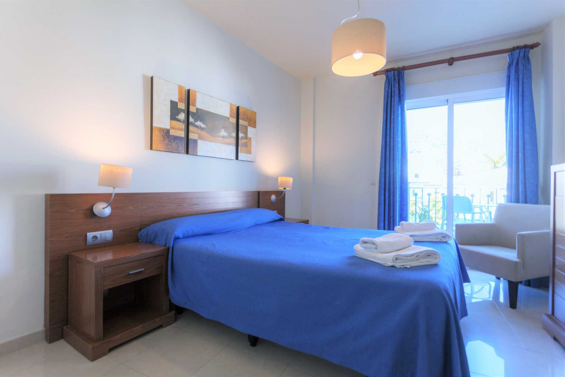Appartementen met drie slaapkamers en balkon of terras. Twee slaapkamers en een gecombineerde woonkamer met minikeuken. Twee eenpersoonsbedden in een slaapkamer en een tweepersoonsbed in de andere slaapkamer. Mogelijkheid voor extra bedden door slaapbank. Minikeuken met kookplaten, koelkast, magnetron, waterkoker, koffiezetapparaat, koelkast, vaatwasser en basiskeukengerei. Wifi en airconditioning inbegrepen. Kluisje tegen betaling. TV met satellietkanalen. Strijkijzer en strijkplank. Wasmachine. Haardroger. Badkuip met douche en toilet. 7 keer per week schoonmaak.