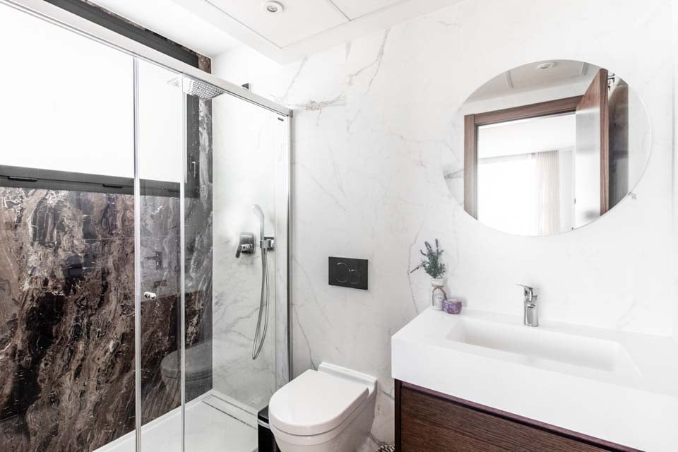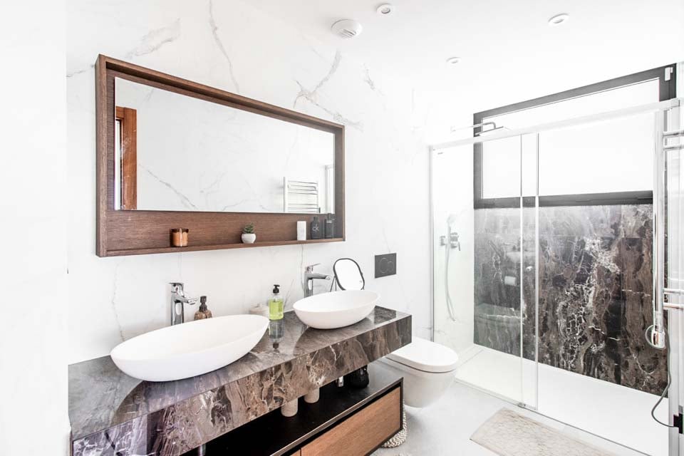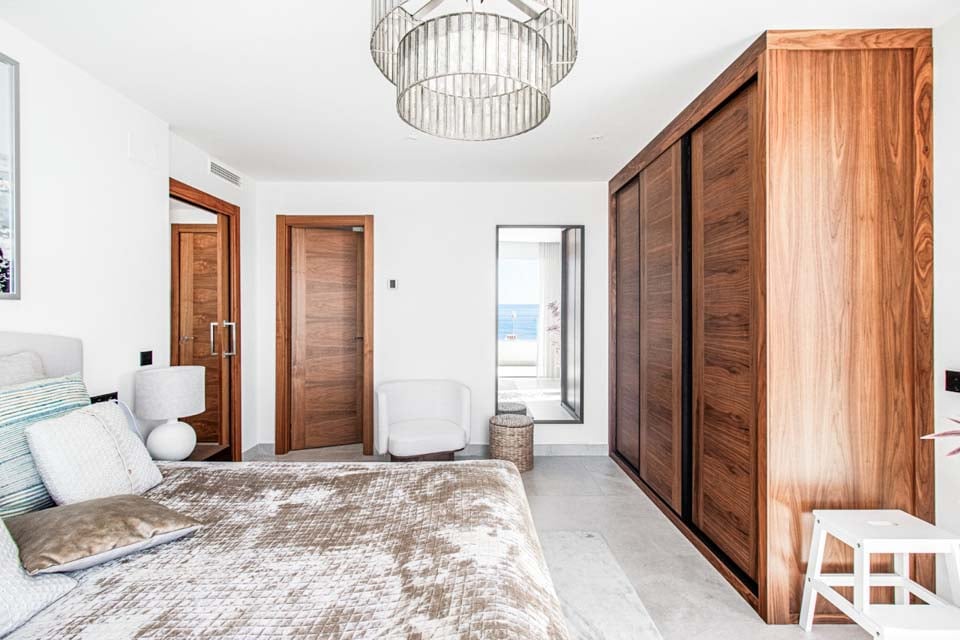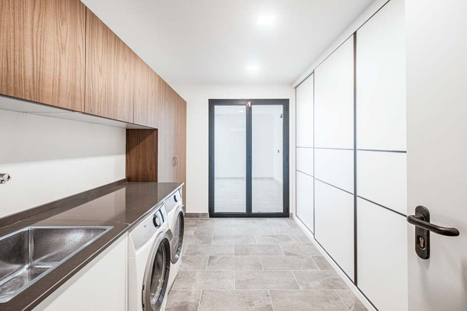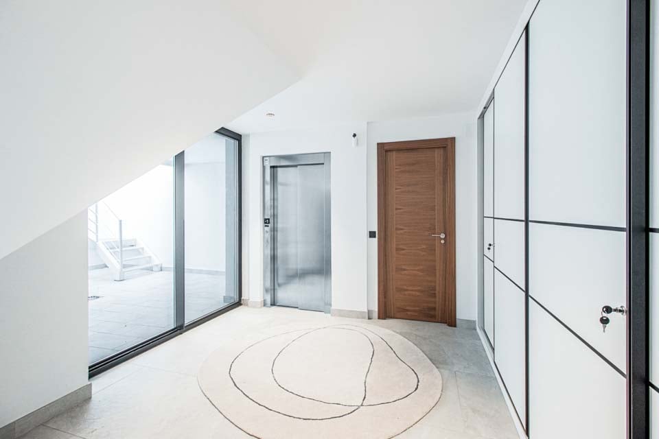 De villa beschikt over een entree op de begane grond en ruime leefruimtes op de eerste en tweede verdieping. Voor extra gemak verbindt een lift alle verdiepingen, waardoor u overal in huis gemakkelijk toegang hebt. Op de tweede verdieping vindt u twee prachtige slaapkamers die elk toegang bieden tot een eigen dakterras met adembenemend panoramisch uitzicht op zee. Het terras beschikt ook over een stijlvolle bar, waar u heerlijk kunt genieten van een drankje terwijl u de avond afsluit.