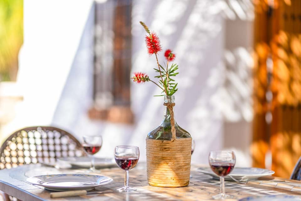 Buiten vindt u het privézwembad van de villa, omringd door ligstoelen waar gasten in alle rust kunnen genieten van de mediterrane zon. Een stenen barbecue zorgt voor een sfeervolle ambiance waar u buiten kunt dineren, terwijl de eetfaciliteiten in de openlucht de ideale setting bieden om te genieten van heerlijke maaltijden in de open lucht.