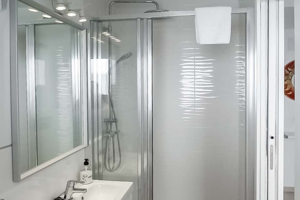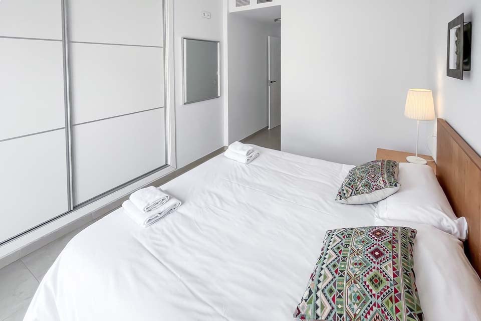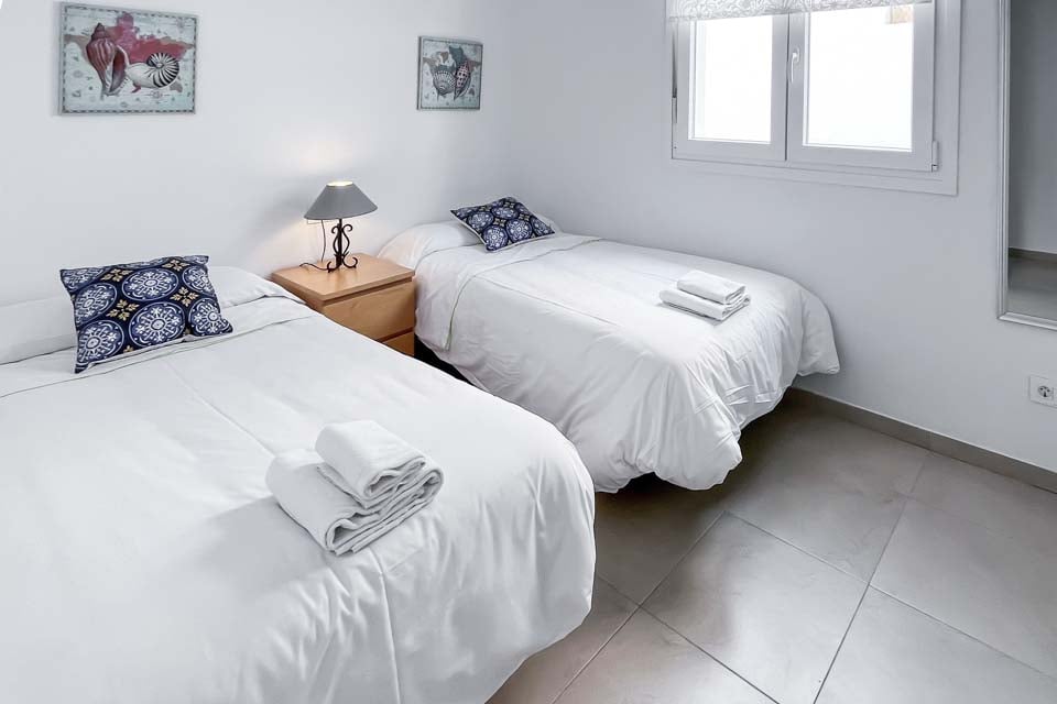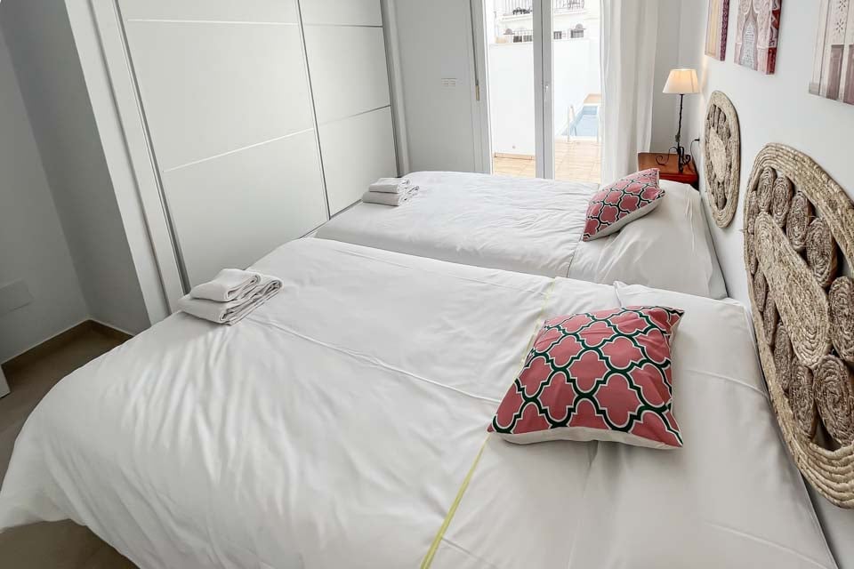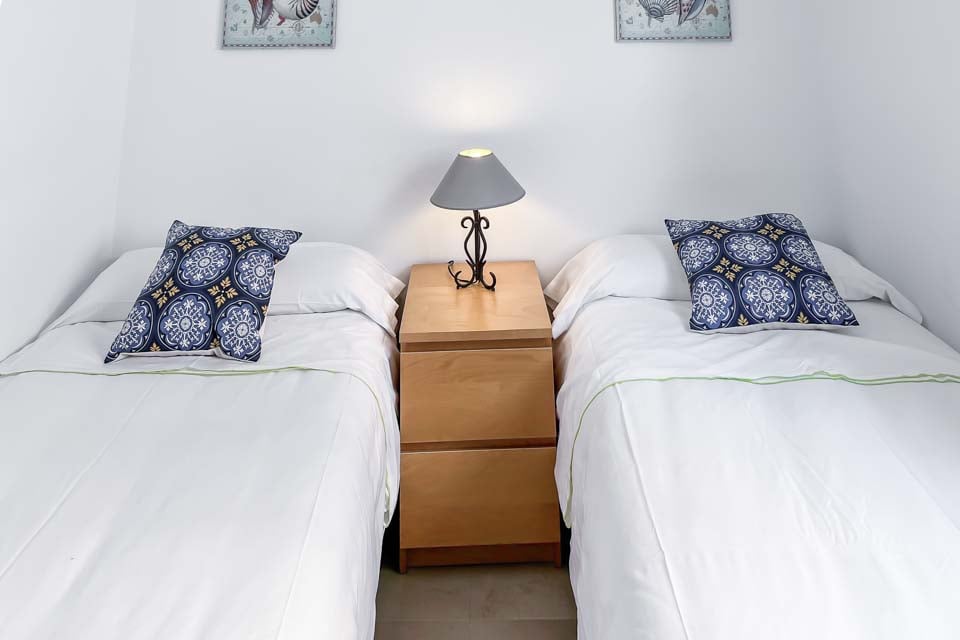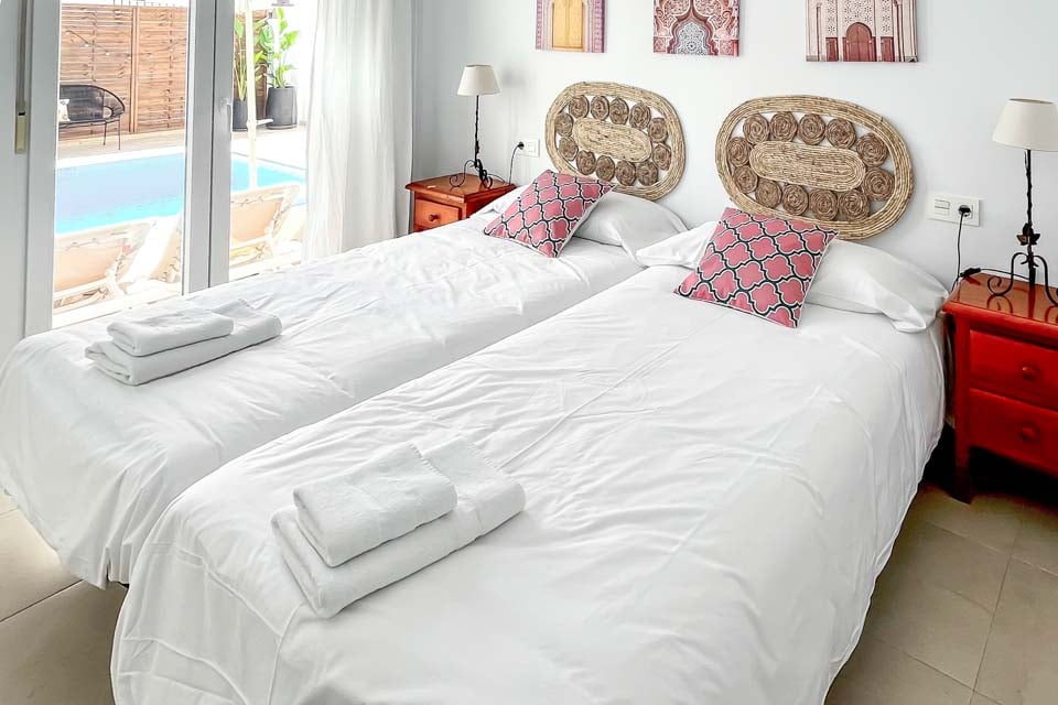 Twee eenpersoonsbedden, airconditioning, deuren naar terras