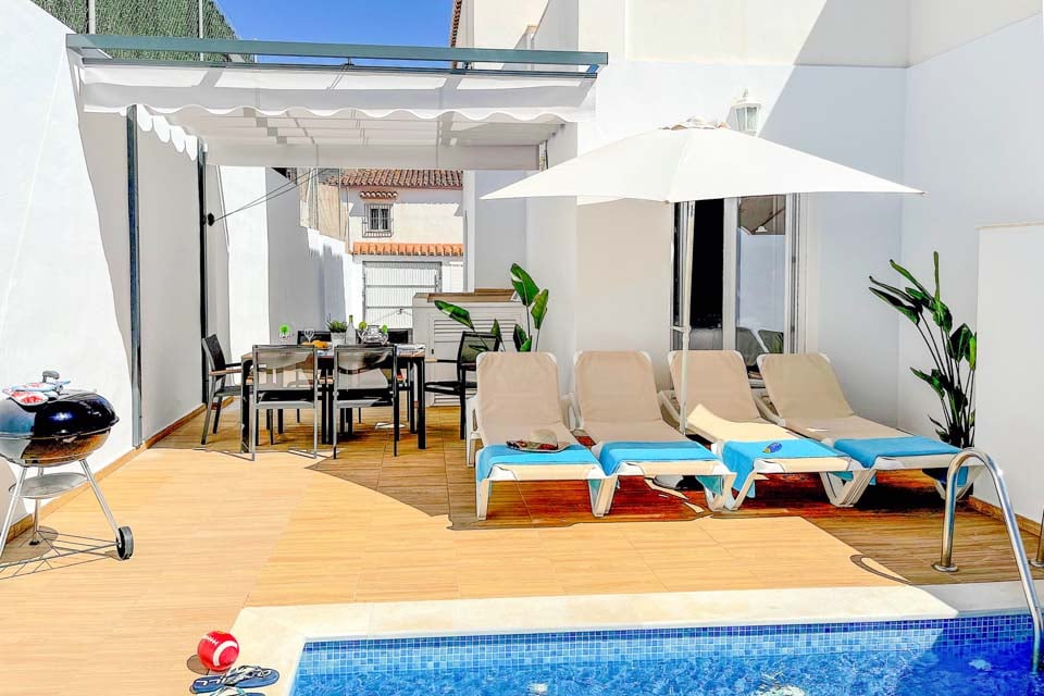 Villa Topaz Nerja ligt midden in het bruisende centrum van Nerja, midden in de actie. Ervaar de rijke cultuur die het gebied en de Spaanse zuidkust rijk is als nooit tevoren. Wat is er nu beter dan een duik in uw eigen privézwembad? Neem wanneer u maar wilt een duik in het helderblauwe water en geniet van de zon vanaf de vroege ochtend tot aan de rustige schemering. Werk aan uw kleurtje op de comfortabele ligstoelen bij het zwembad en krijg die feestelijke gloed waar al uw vrienden en familie thuis jaloers op zullen zijn. In de volledig uitgeruste keuken kunt u heerlijk koken en buiten dineren op het prachtige terras bij het zwembad. Dit is de beste plek om te genieten van een verfrissend drankje, terwijl de geur van heerlijk vers bereid eten in de lucht hangt. Creëer onvergetelijke herinneringen met uw dierbaren terwijl u binnen geniet van een rustige avond. Vlei uzelf op de comfortabele banken voor de tv in de gezellige woonkamer voordat u naar boven gaat naar de warme en gastvrije slaapkamers. Na een heerlijke nachtrust kunt u de volgende ochtend vanaf het balkon genieten van het uitzicht op de architectuur van Nerja in de ochtendzon, met een lekker kopje koffie in de hand. Ga naar het centrum van Nerja en word steeds verliefder op dit charmante stadje. Van de lokale bars en restaurants die heerlijk authentiek eten en drinken serveren, tot de prachtige zandstranden die het grootste deel van de Spaanse zuidkust vormen: er is genoeg te zien en te doen om alles te ervaren wat deze prachtige streek te bieden heeft. Voor stadsreizigers die op zoek zijn naar een Spaans avontuur, is Villa Topaz Nerja de ideale bestemming.