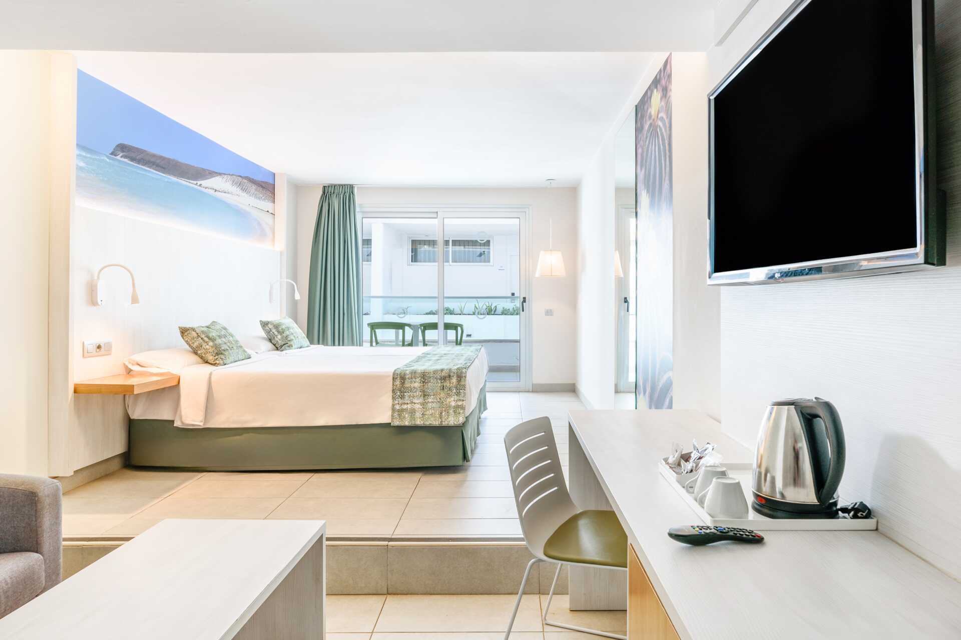 Tweepersoonskamer met balkon of terras of zonder patio. Twee eenpersoonsbedden. Mogelijkheid voor extra bed in slaapbank in kamers met balkon of terras. Wifi, airconditioning en kluis inbegrepen. Waterkoker, koffie en thee. Tv met internationale zenders. Föhn. Badkamer met douche en toilet. Schoonmaak 7 keer / week. Er kan een niveauverschil zijn met een opstapje in de kamer.