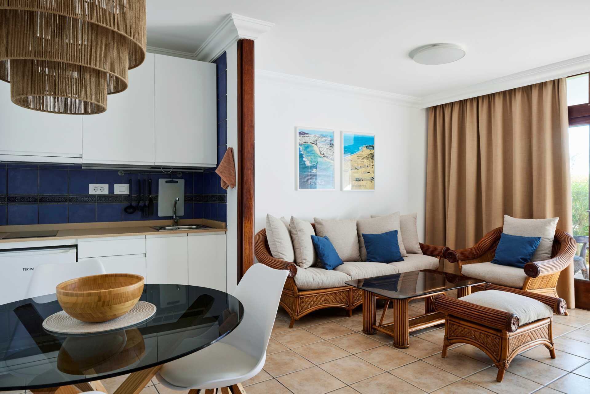 Een warm welkom bij een populaire favoriet op het zonnige Gran Canaria: het Apollo Mondo Duo hotel Sunsuites Carolina in San Agustin. hotel, dat in de winter deel uitmaakt van onze geselecteerde hotels voor volwassenen, is een van onze meest gewaardeerde hotels op Gran Canaria. Het Scandinavisch sprekende personeel, de ligging aan het strand en de familiale sfeer zorgen ervoor dat veel gasten jaar na jaar terugkomen. Er is een mooi zwembadgedeelte met een verwarmd zwembad en een tuin met geurige tijm en prachtige citroenbomen.