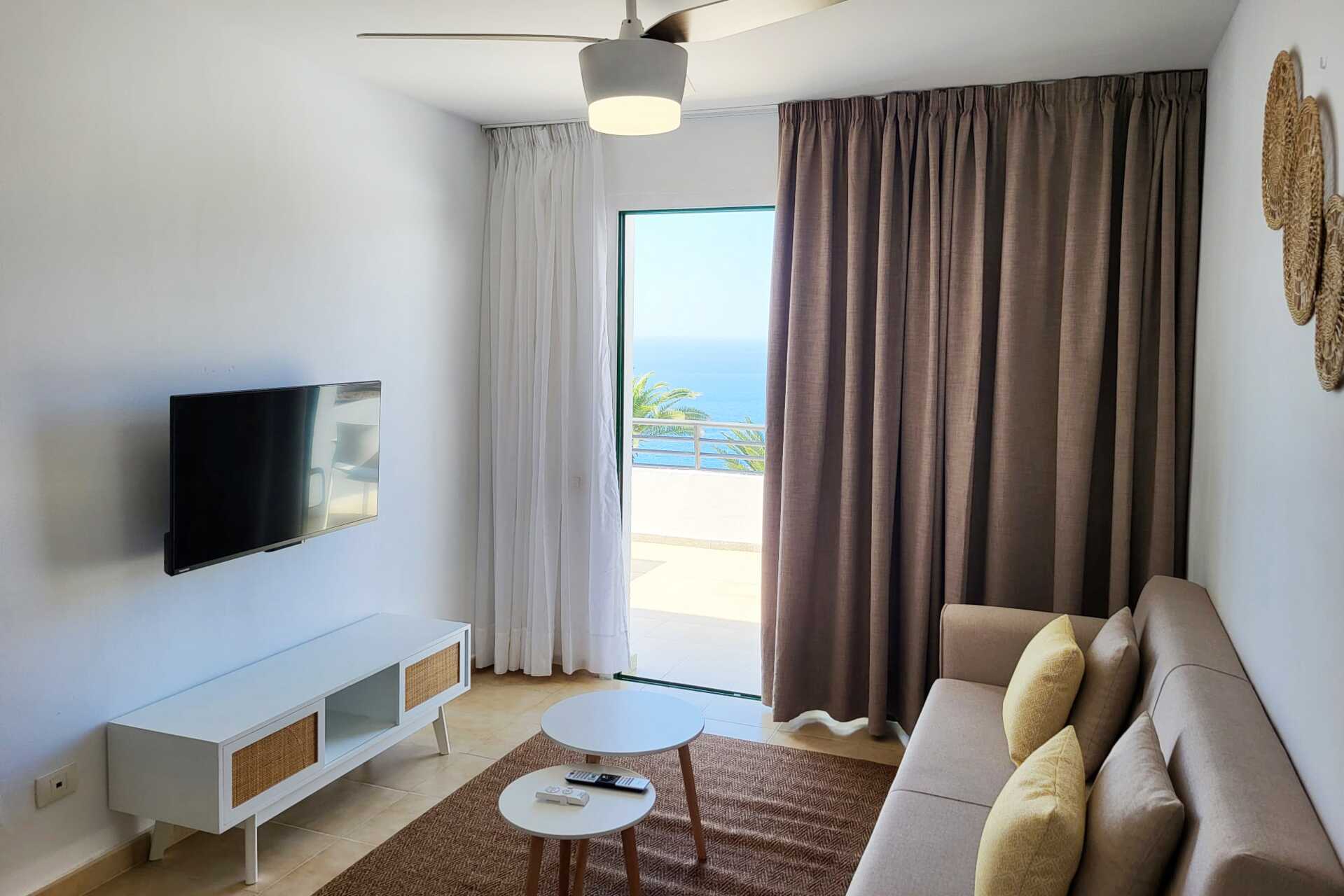 Junior suite met balkon en zeezicht. De junior suite bestaat uit een slaapkamer en een woonkamer en bevindt zich op de verdiepingen 2, 3, 4 en 5. Twee eenpersoonsbedden. Mogelijkheid voor een extra bed in de vorm van een slaapbank. Wifi inbegrepen. Kluisje tegen betaling. Plafondventilator. Koelkast. Waterkoker, koffie en thee. Tv met internationale zenders. Föhn. Badkamer met douche en toilet. Schoonmaak 5 keer/week.