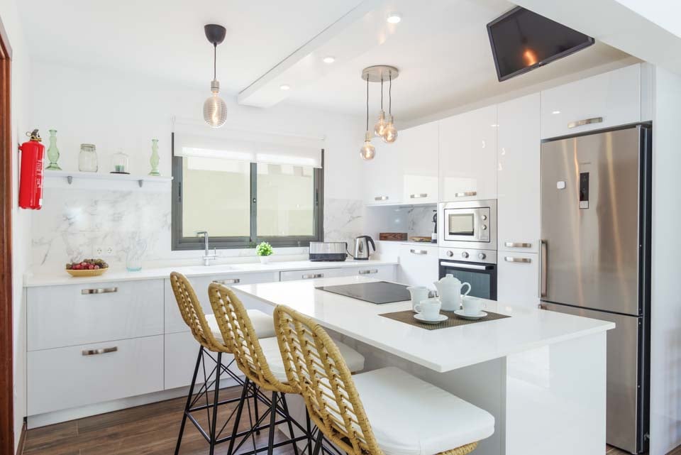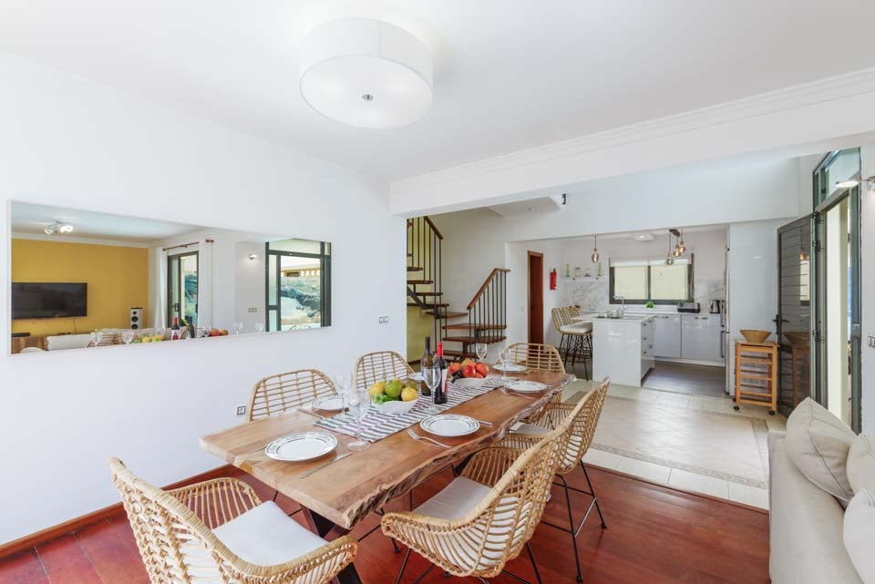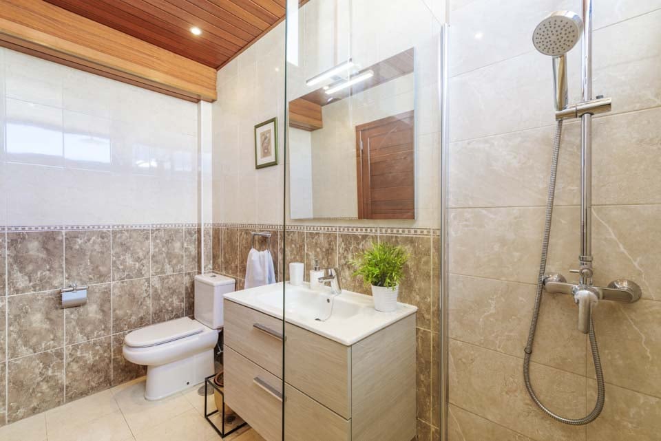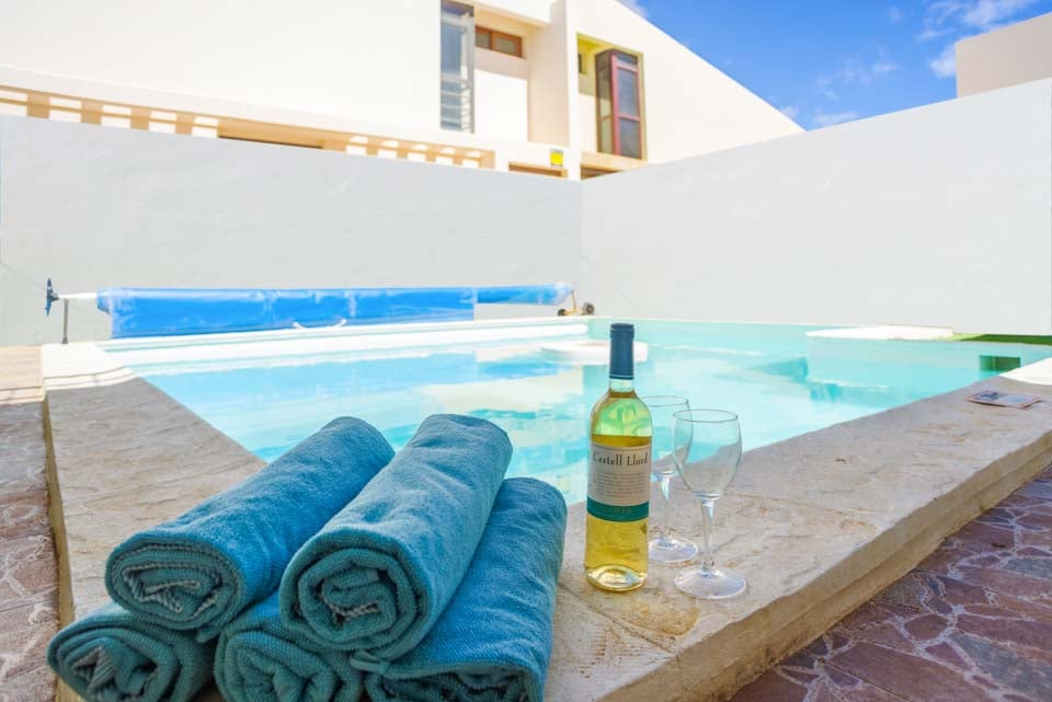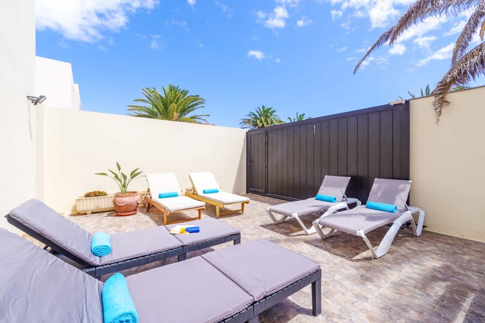 U kunt er ook voor kiezen om uw bruine kleur weer op te pakken bij Villa Lanzabur. Het terras is in tweeën gedeeld. Aan de ene kant bevindt zich het zwembad en aan de andere kant zijn er eetgelegenheden en ligstoelen. Bovendien kan het hek dat de twee ruimtes scheidt, voor uw gemoedsrust gesloten en op slot gedaan worden. De villa is gezellig ingericht met een moderne, volledig uitgeruste keuken die grenst aan een comfortabele woonkamer. Boven vindt u drie slaapkamers, waarvan één hoofdslaapkamer met kingsize bed en eigen badkamer, en nog eens twee slaapkamers die een aparte doucheruimte delen. Alle accommodaties zijn voorzien van airconditioning, zodat u koel blijft tijdens warme zomernachten.