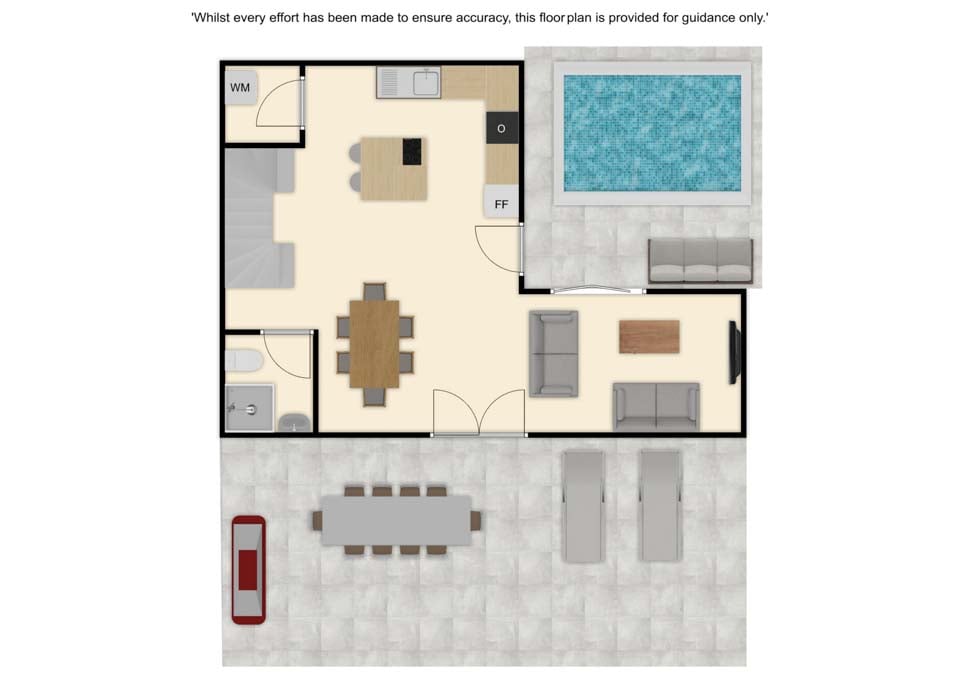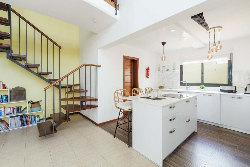 Om de villa te bereiken is er een pad van 77 cm breed. De voordeur heeft een breedte van 115 cm, terwijl de deur naar het terras 83 cm breed is. Het zwembadgedeelte is vlak, met een rand eromheen. Het zwembad zelf is via een trap te bereiken. Er zijn geen slaapkamers op de begane grond. Er zijn 15 treden naar de eerste verdieping. Deze trappen zijn licht wentelend. Dit is te zien op de afbeeldingen. De deur van de hoofdslaapkamer heeft een breedte van 72 cm, terwijl de deur van de ensuite badkamer 62 cm breed is. De deur naar de keuken/eetkamer is 115 cm breed en de deur naar de woonkamer is ook 115 cm breed. *Houd er rekening mee dat hoewel wij er alles aan doen om de verstrekte informatie juist te maken, er fouten kunnen optreden. Mocht u meer specifieke informatie over de villa nodig hebben, neem dan gerust contact met ons op.