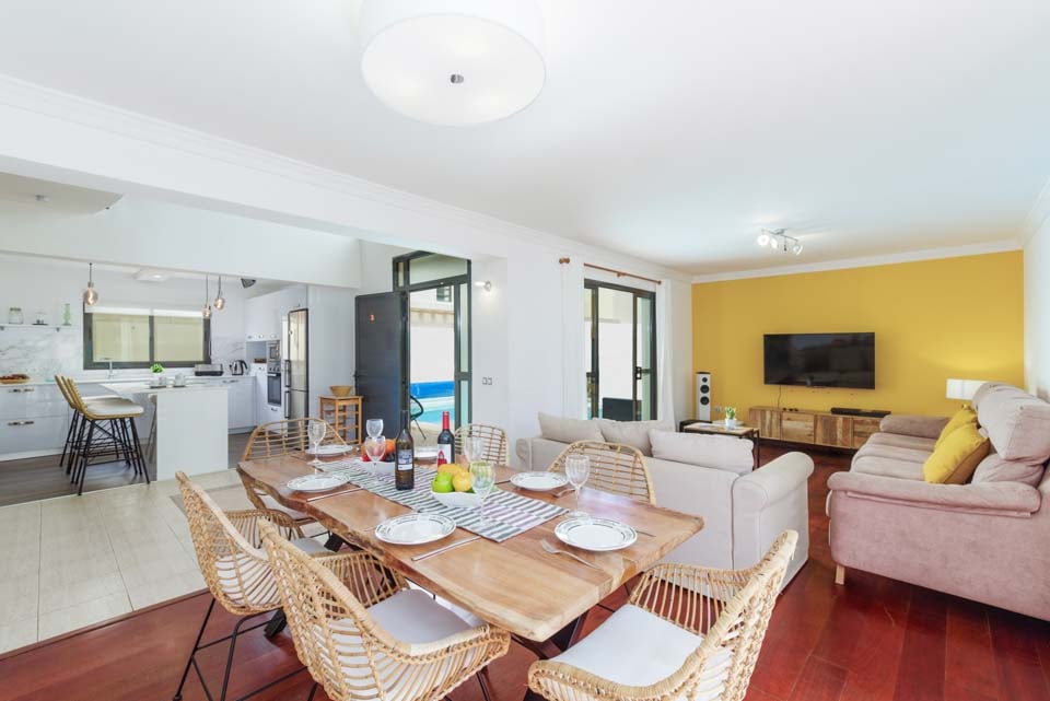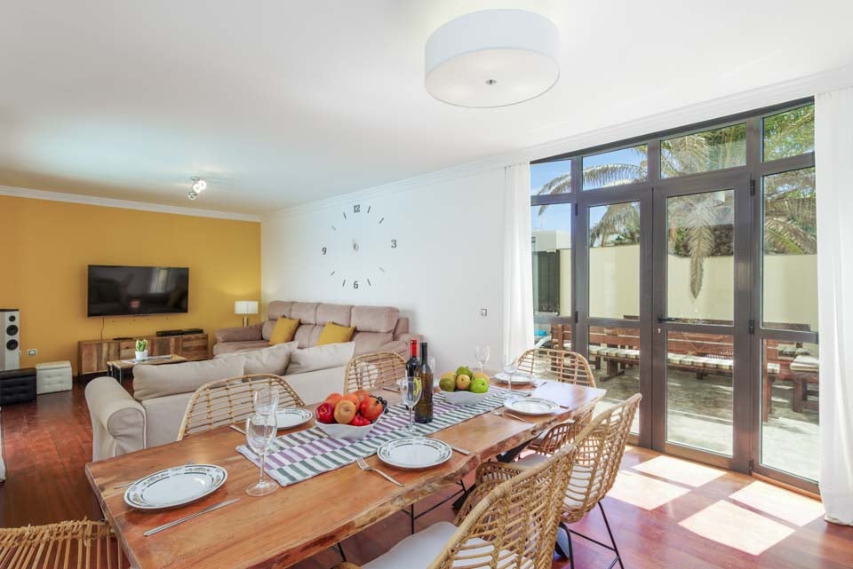 Comfortabele zithoek, smart-tv, Bluetooth-luidspreker, eetgelegenheid, open indeling, deuren naar terras