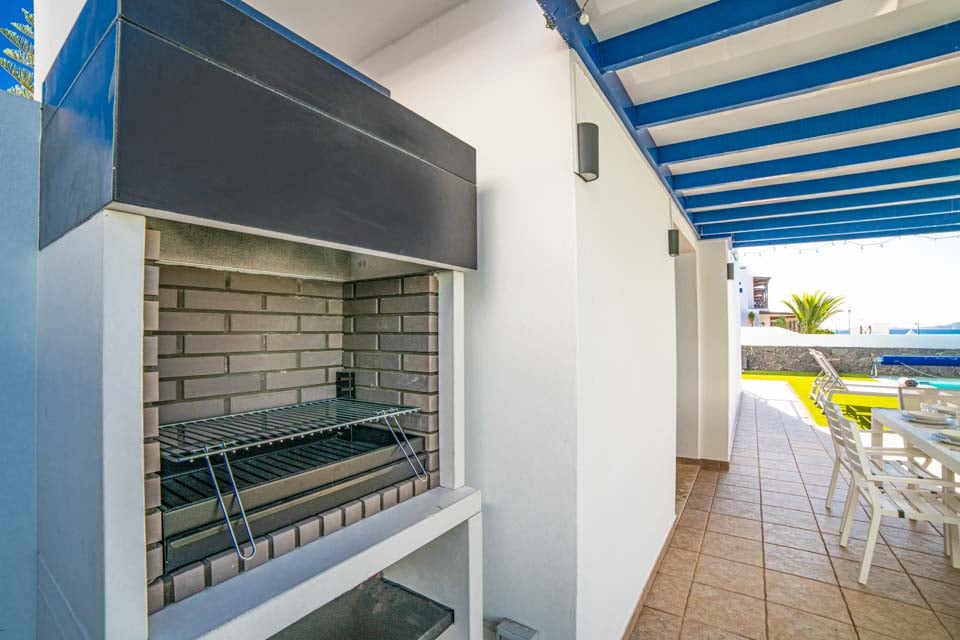Villa Galway Bay ligt in de wijk Castillo del Aguila in Playa Blanca en is de ideale vakantiebestemming. Dit prachtige, witgekalkte pand ligt op een hoekperceel en biedt uitzicht op zee en een zonnig tuinterras. Deze omheinde tuin is ideaal voor dineren in de buitenlucht en beschikt over een indrukwekkende stenen barbecue en schaduwrijke pergola's. Het is de ideale plek voor een lichte lunch met verse producten, gegrild op de barbecue. Lanzarote staat bekend om zijn verse vis en zeevruchten en is een uitstekende bestemming voor fijnproevers. Aan de boulevard van Playa Blanca vindt u restaurants, bars en cafés aan het water. Waarom maakt u niet een avondwandeling naar het stadscentrum, dat op slechts 30 minuten afstand ligt, en geniet u daar van een maaltijd bij zonsondergang met vrienden en familie?