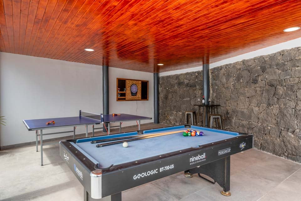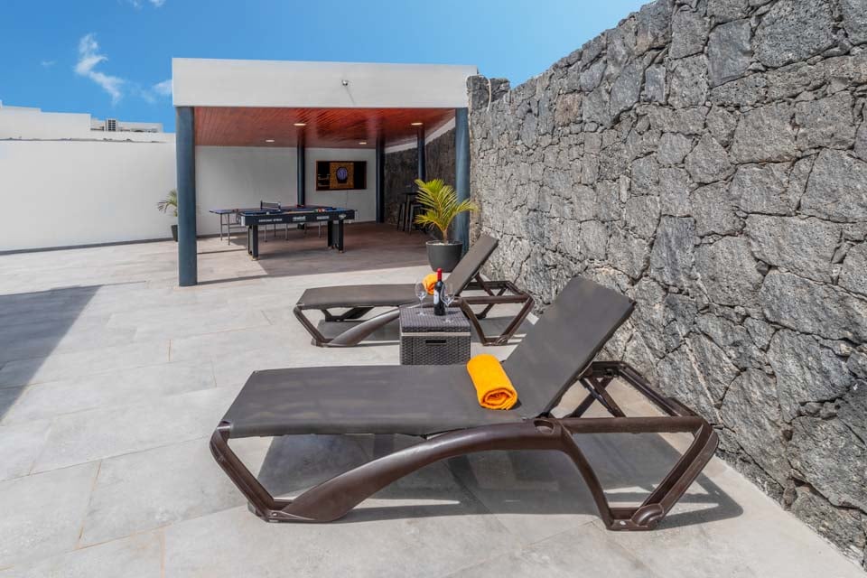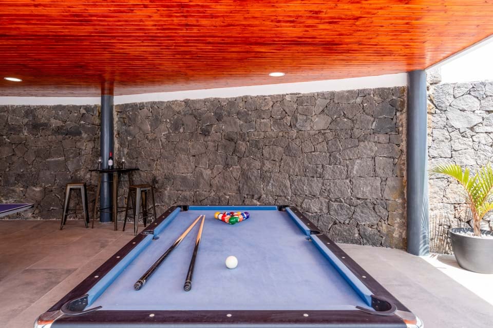Overdekt terras, dineren in de openlucht, faciliteiten voor dineren in de openlucht, eetfaciliteiten, barbecue, barbecue van baksteen, ligstoelen, pooltafel, tafeltennis, hot tub