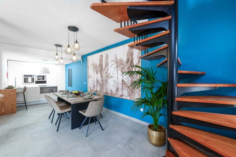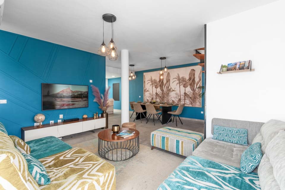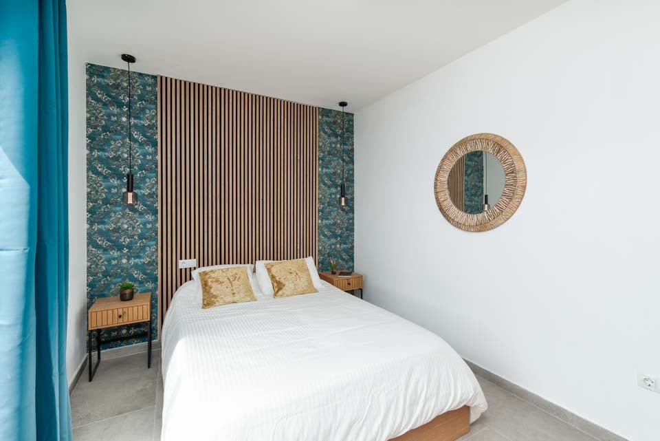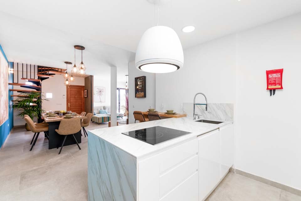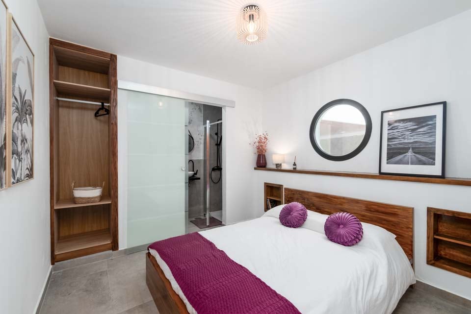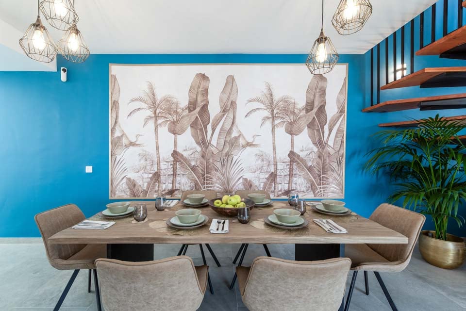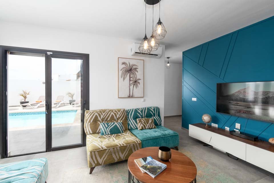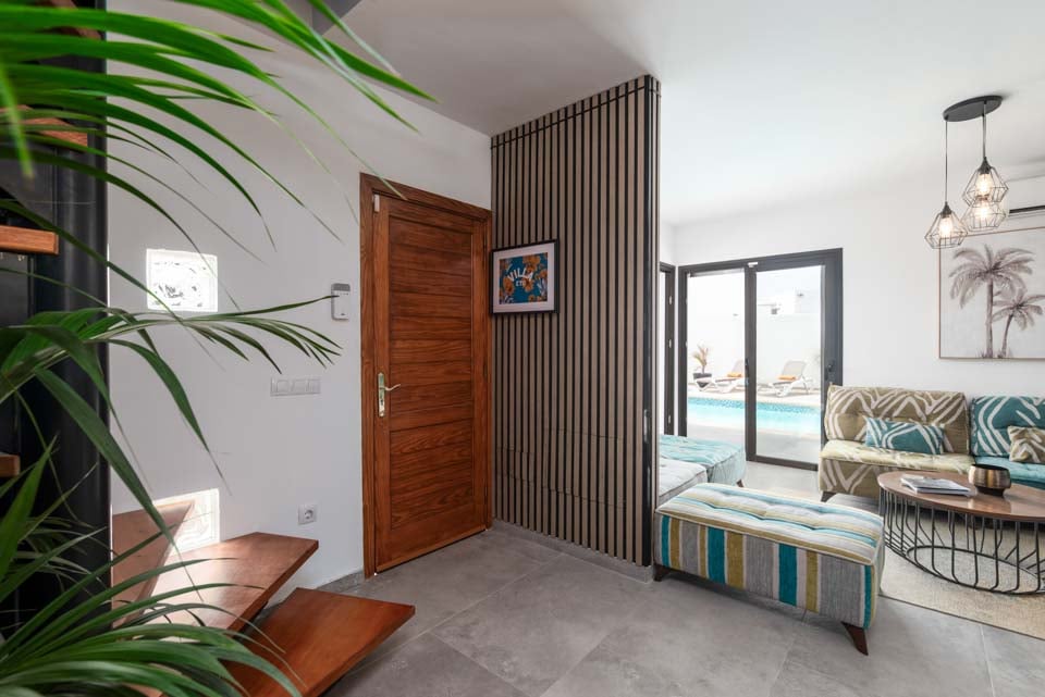 Binnen vindt u een modern interieur met kleuraccenten, waardoor dit een echt thuisgevoel is. Naast een volledig uitgeruste keuken, een bijkeuken en een koele airconditioning, vindt u hier alles wat u nodig heeft tijdens uw self-cateringvakantie. Met vier slaapkamers en drie badkamers is deze villa ideaal voor maximaal acht gasten. Zorg ervoor dat u de slaapkamer op de eerste verdieping boekt. Deze beschikt over een eigen badkamer, balkon en tuinstoelen. Een ideale plek voor een drankje 's avonds laat!