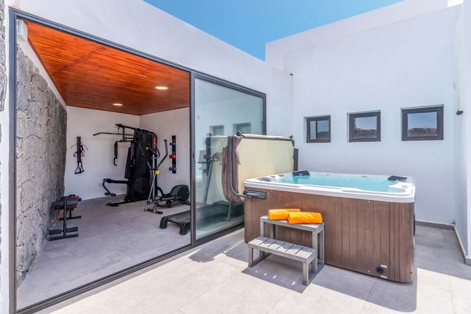 Externe toegang, fitnessapparatuur, deuren naar terras