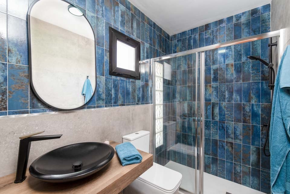 Om de villa te bereiken is er een pad van 200 cm breed met daarnaast 1 trede. De voordeur heeft een breedte van 70 cm, terwijl de deur naar het terras 60 cm breed is. Het terras is open, vlak en betegeld. Er zit een kleine rand boven het kozijn van de terrasdeur. Het zwembad zelf is via een trap te bereiken. Alle slaapkamers hebben een deurbreedte van 70 cm, terwijl alle badkamers een deurbreedte van 60 cm hebben. Er zijn 18 treden naar de eerste verdieping, bereikbaar via een wenteltrap. De deur naar de keuken/eetkamer is 209 cm breed en de deur naar de woonkamer is ook 200 cm breed. *Houd er rekening mee dat hoewel wij er alles aan doen om de verstrekte informatie juist te maken, er fouten kunnen optreden. Mocht u meer specifieke informatie over de villa nodig hebben, neem dan gerust contact met ons op.