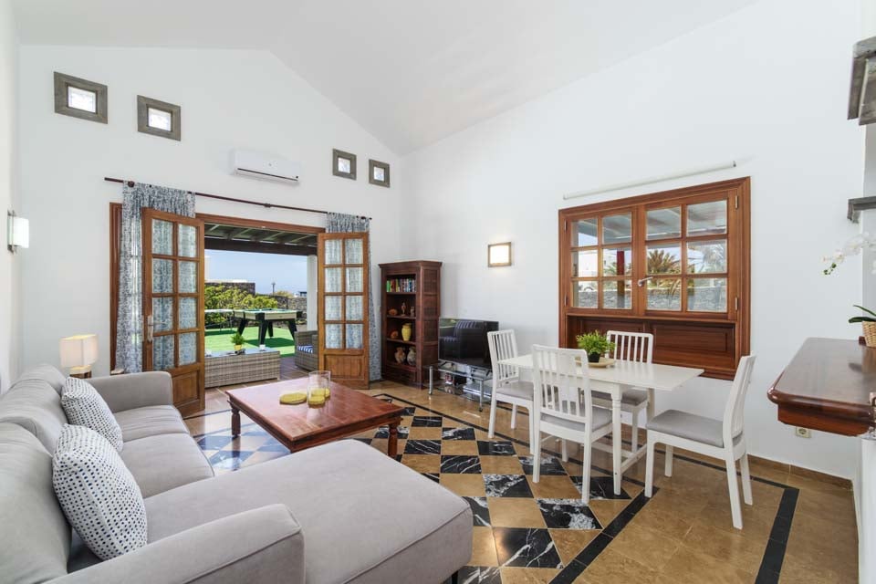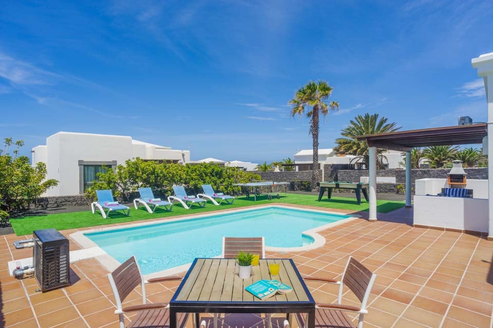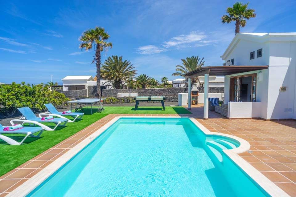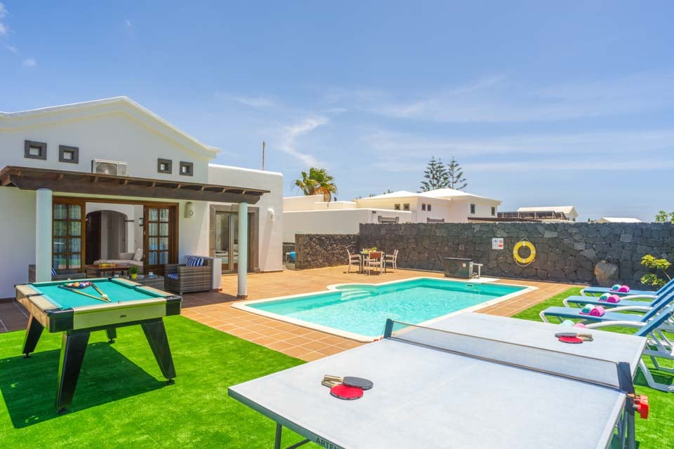 Villa Faroles is ideaal voor stellen en kleine gezinnen die op zoek zijn naar een rustige locatie dicht bij de populaire kustplaats Playa Blanca. Deze typisch Canarische, witgekalkte woning is verdeeld over één verdieping en heeft twee slaapkamers. Gasten worden verwelkomd in een open woon- en eetkamer met uitzicht op een volledig uitgeruste keuken. De ruimte baadt in het natuurlijke licht dankzij de openslaande deuren naar het overdekte terras en de tuin, waar gasten kunnen genieten van de warme zon. Er is een tafeltennistafel voor een leuke wedstrijd, terwijl de ouders een feestmaal bereiden op de barbecue. En natuurlijk is er een uitnodigend zwembad om in te spetteren of de hele middag te luieren!
