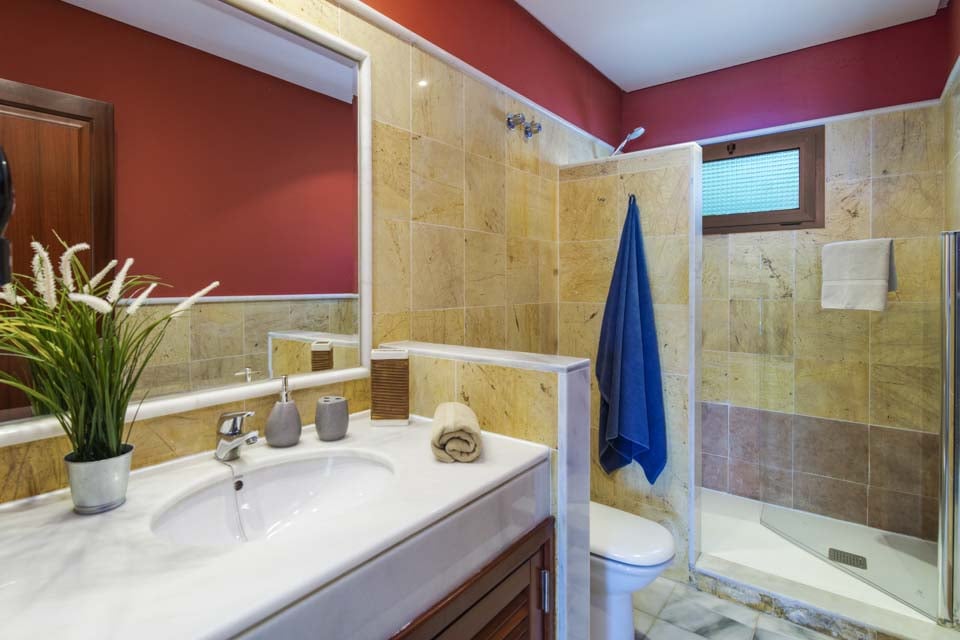 Om de villa te bereiken is er een pad van 93 cm breed met 1 trede. De voordeur heeft een breedte van 80 cm. De breedte van de deur naar het zwembadterras bedraagt 140 cm. Het terras en het zwembad zijn open. Het terras rondom het zwembad is vlak en betegeld. Het zwembad zelf is voorzien van een trap en de tegels rondom het zwembad hebben een rand van 3 cm. Dit betreft een woning op de begane grond. De hoofdslaapkamer heeft een deurbreedte van 75 cm, terwijl de ensuite badkamer en de familiebadkamer beide een deurbreedte van 67 cm hebben. De deur naar de keuken/eetkamer is 78 cm breed, terwijl de deur naar de woonkamer 140 cm breed is. *Houd er rekening mee dat hoewel wij er alles aan doen om de verstrekte informatie juist te maken, er fouten kunnen optreden. Mocht u meer specifieke informatie over de villa nodig hebben, neem dan gerust contact met ons op.