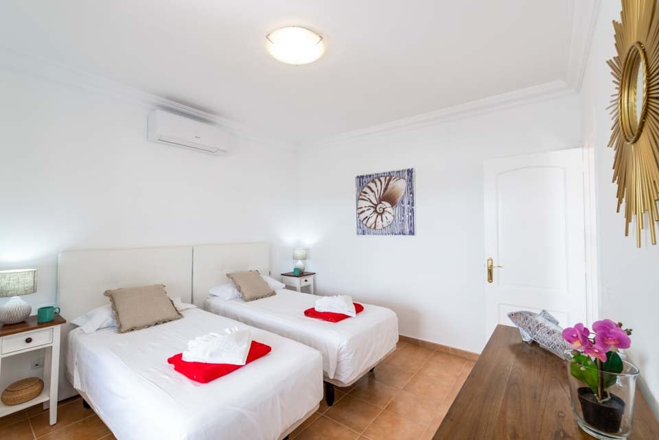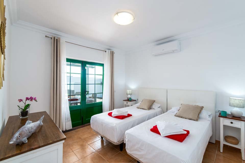 Twee eenpersoonsbedden, airconditioning, deuren naar terras