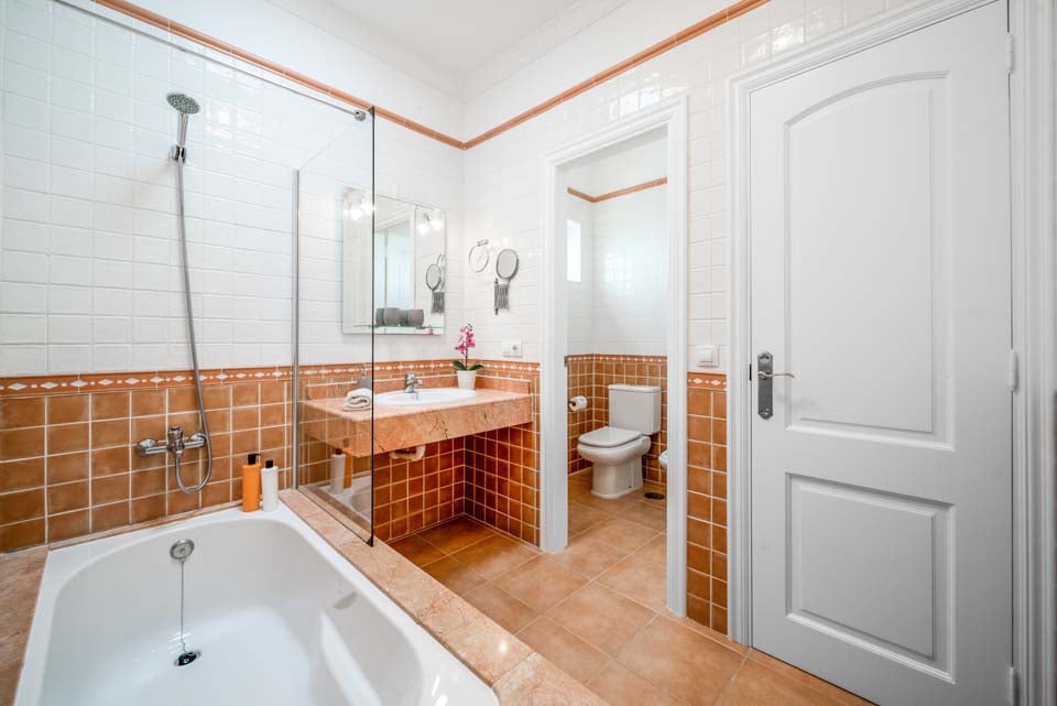 Wilt u afkoelen, ga dan naar binnen en zoek de schaduw op. De gezellige lounge is minimalistisch en neutraal van kleur en voorzien van een smart-tv, zodat u zich prima kunt vermaken. De volledig uitgeruste keuken is modern ingericht en voorzien van de nieuwste apparatuur. Op de begane grond bevinden zich tevens de eerste slaapkamer, een tweepersoonskamer met openslaande deuren naar het terras en een aparte doucheruimte. Boven vinden we de overige twee slaapkamers, één met twee eenpersoonsbedden en de hoofdslaapkamer met tweepersoonsbed. Beide slaapkamers delen een familiebadkamer.