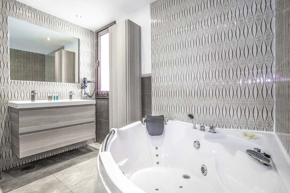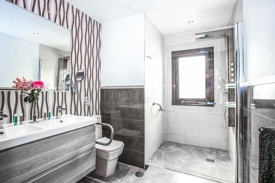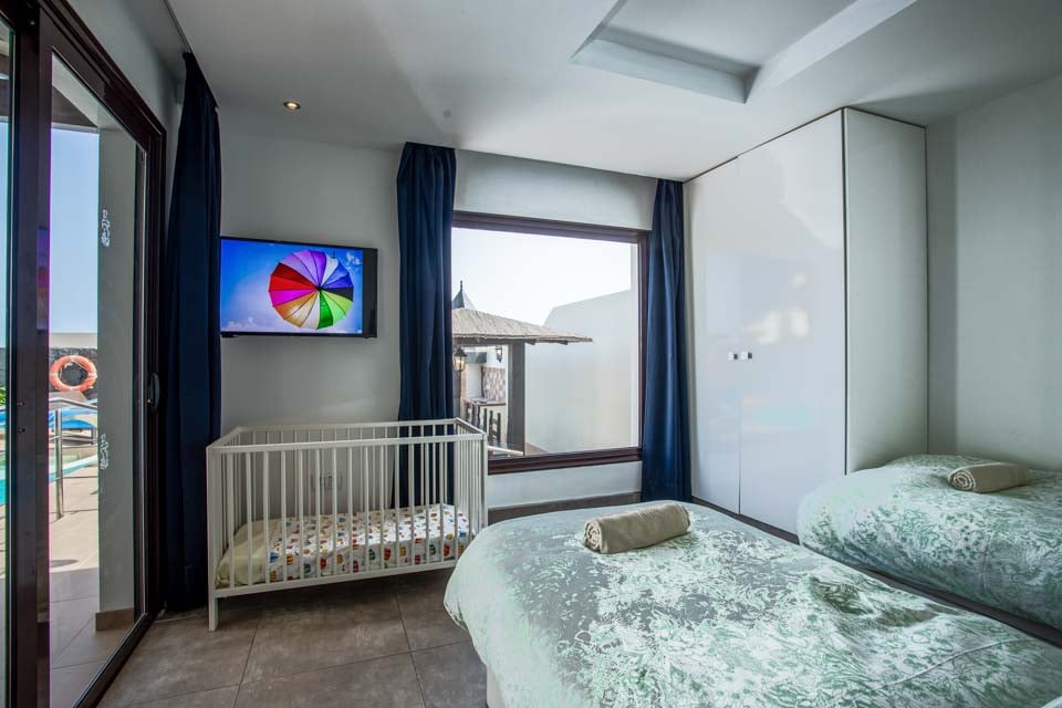 De 5 slaapkamers, verdeeld over twee verdiepingen, zijn zorgvuldig ontworpen en afgestemd op de doelgroep. De kinderkamer met twee eenpersoonsbedden, een televisie, bevindt zich op de begane grond en biedt direct toegang tot het kinderzwembad en de speeltuin. Op dezelfde verdieping bevindt zich ook een mooie tweepersoonsslaapkamer met een hemelbed, een grote flatscreen-tv en een uitnodigende badkamer met hydromassagedouche. De slaapkamers op de begane grond zijn compleet met een ruime tweepersoonskamer met moderne meubels, een flatscreen-tv en een dubbele kledingkast. Voor uw gemak is er op deze verdieping ook een aparte doucheruimte.