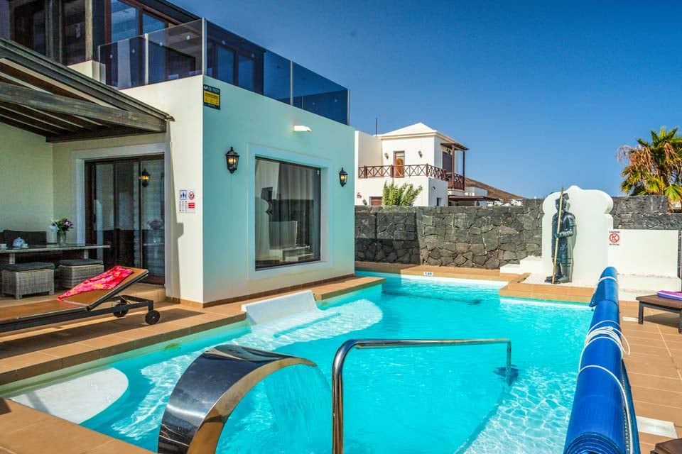 Villa Xian ligt in een exclusieve wijk van Playa Blanca en biedt u ultiem comfort en gedetailleerde details. Als u van de fijnere dingen in het leven houdt en uzelf een beetje wilt verwennen, dan is dit de perfecte villa voor u. Deze prachtige plek is versierd met een oosters thema, met indrukwekkende Chinese terracotta krijgers verspreid over de villa. Het is een symbool van de Chinese stad Xian, de thuisbasis van het Terracottaleger van Keizer Qin Shi Huang en het begin van de Zijderoute. U zult niet teleurgesteld worden als u de kleine eigenaardigheden ontdekt die dit schitterende pand te bieden heeft, zoals een fitnessruimte met uitzicht op zee, sauna, bubbelbad, thuisbioscoop en zelfs een eigen zwembaan die op stijlvolle wijze langs het huis loopt.