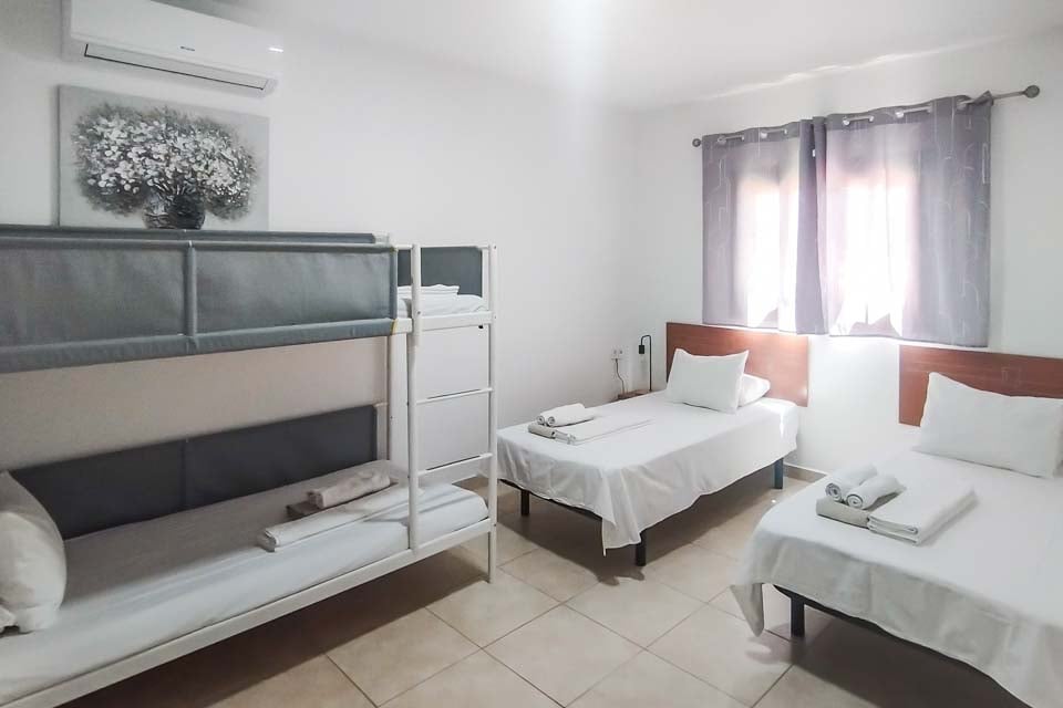 Twee eenpersoonsbedden, stapelbedden, airconditioning