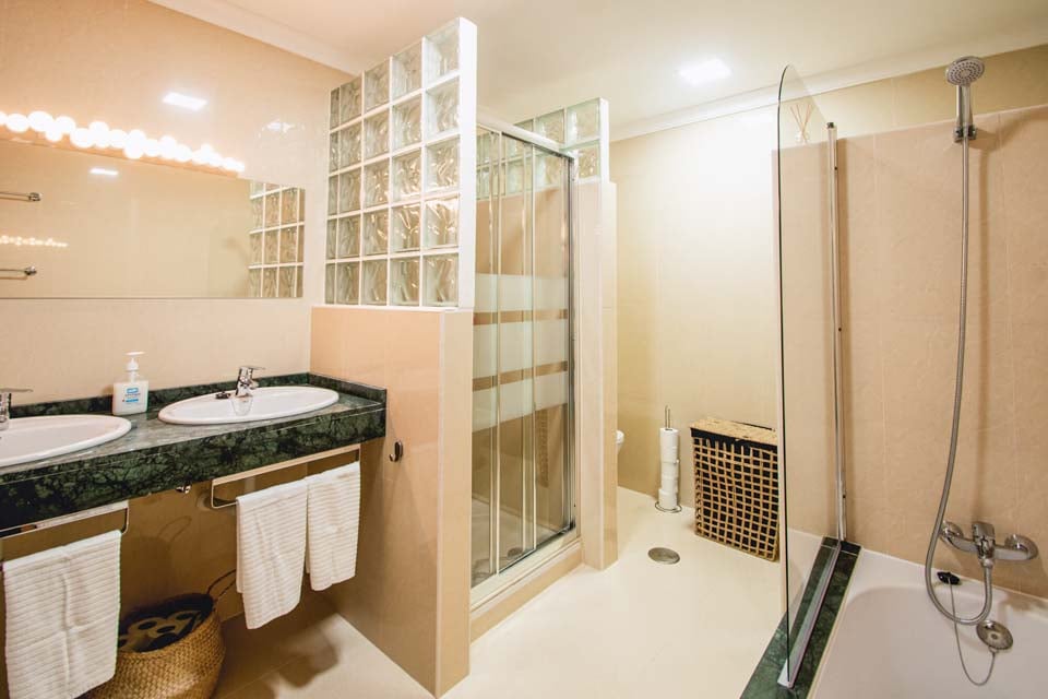 Bad met douche, Douche, Toilet, Wastafel, Dubbel, Dubbele wastafels