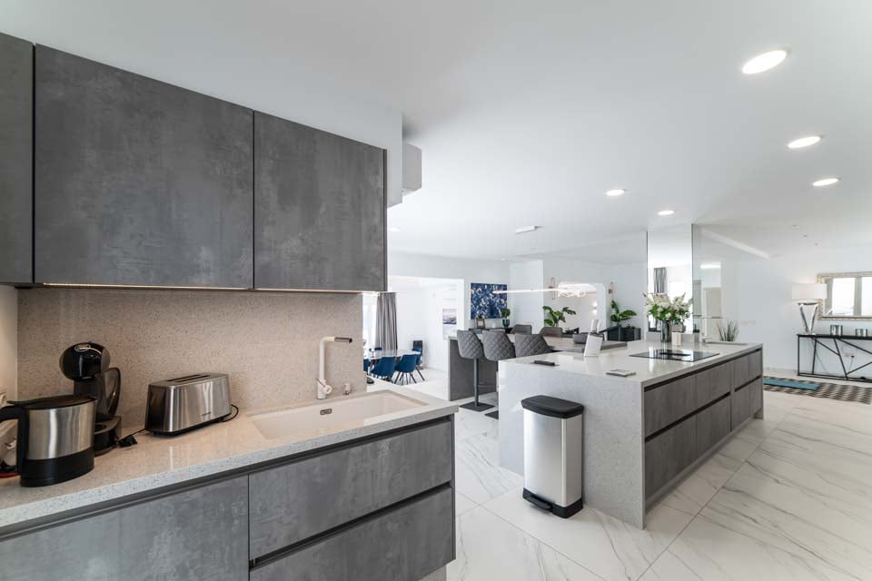 Oven, Kookplaat, Magnetron, Vriezer, Koelkast, Koel-/vriescombinatie, Wijnkoeler, Vaatwasser, Smart-tv, Zeezicht, Airconditioning, Deuren naar terras