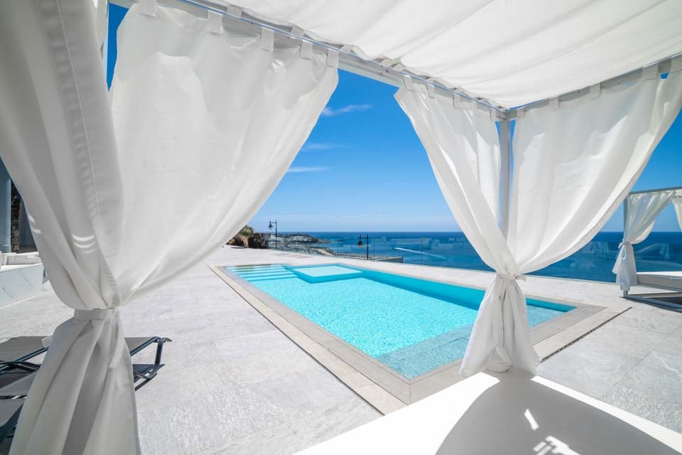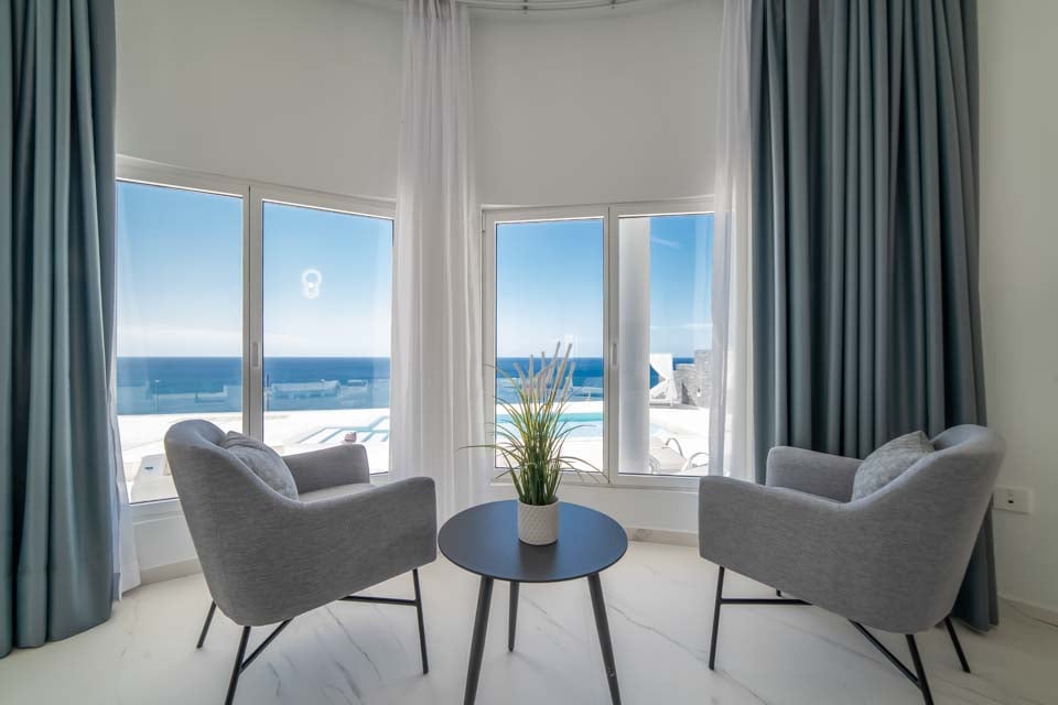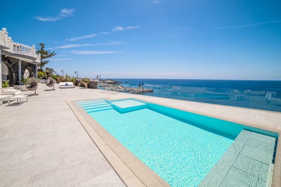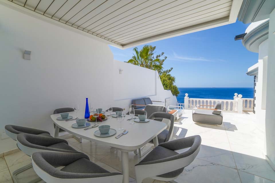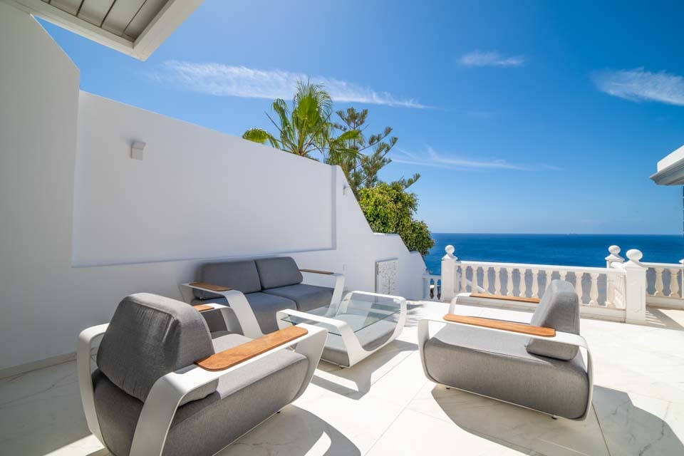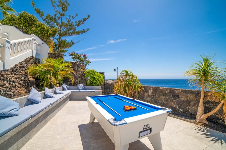 Kom naar buiten en ontspan! Op het lager gelegen terras van de villa vindt u een privézwembad, omgeven door comfortabele ligbedden en badlakens voor zonnige middagen. In de aparte hottub kunt u in stijl ontspannen, terwijl de knusse egg chairs en de tuinmeubelen de ideale setting creëren voor een gezellig gesprek in de avond. Het entertainment gaat verder met een pooltafel en er is voldoende ruimte om te ontspannen of te spelen. Boven vindt u het ruime boventerras met een weids uitzicht op zee: een rustige plek voor een kopje koffie in de ochtend of een cocktail bij zonsondergang.